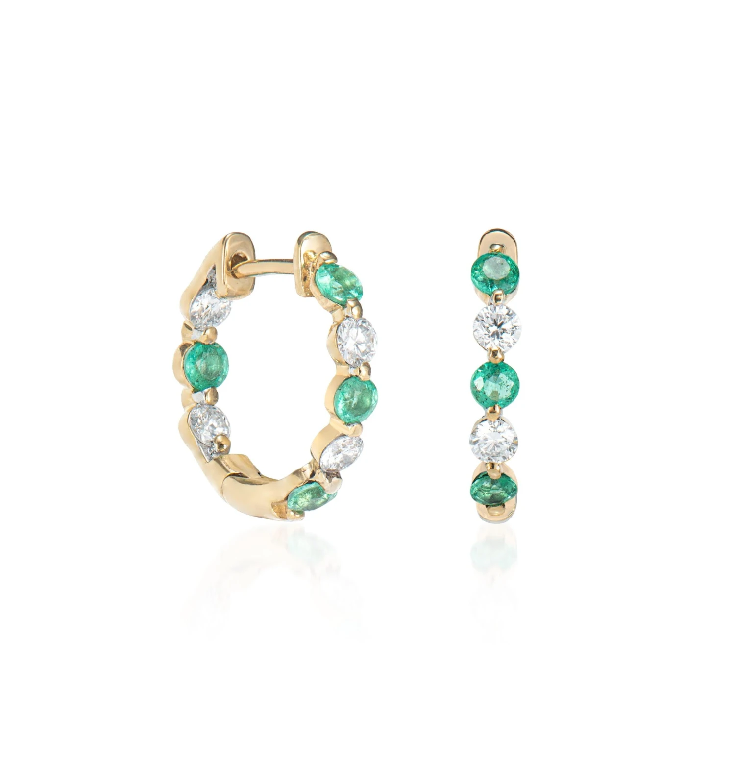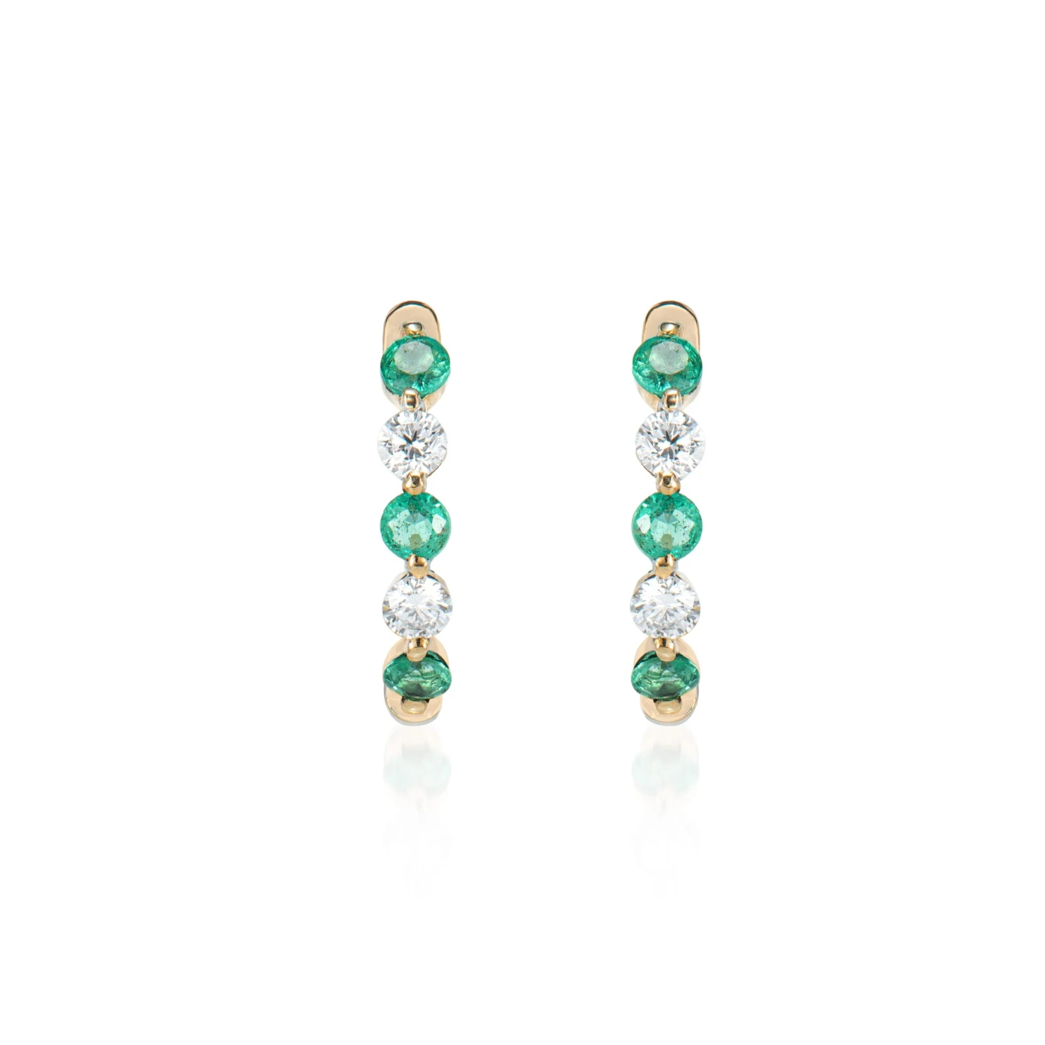 Emerald Hoop Earrings in 14Karat Yellow Gold with White Diamond.