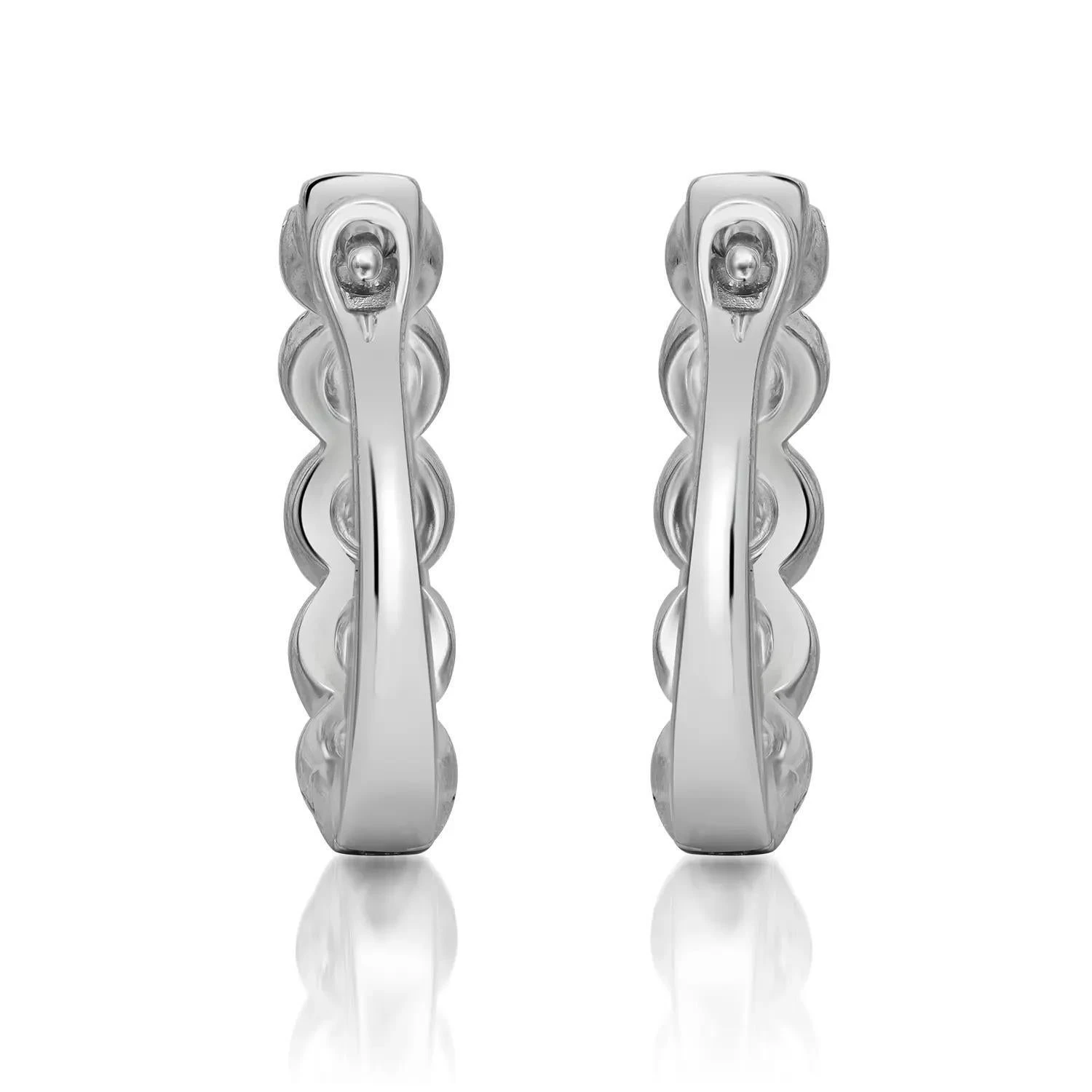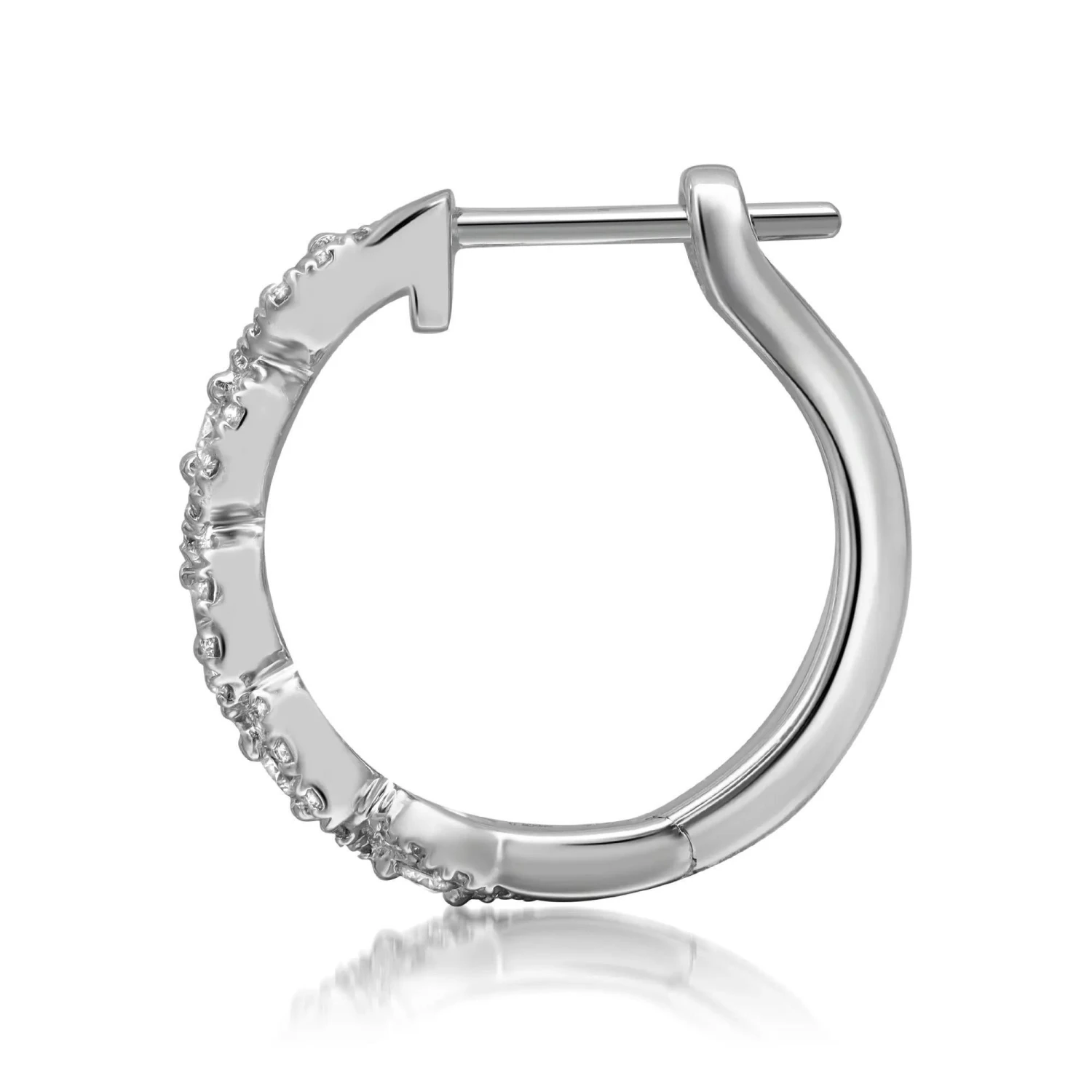 Sparkle all way with these beautiful diamond huggie earrings. Crafted in fine 14K white gold. These earrings feature prong set round brilliant cut diamonds weighing 0.61 carats. Diamond color G-H and clarity VS-SI. Earring size: 0.8 inch. Width: 4.7mm. Total weight: 5.68 grams. Secured with hinged back. Comes with a presentable gift box.