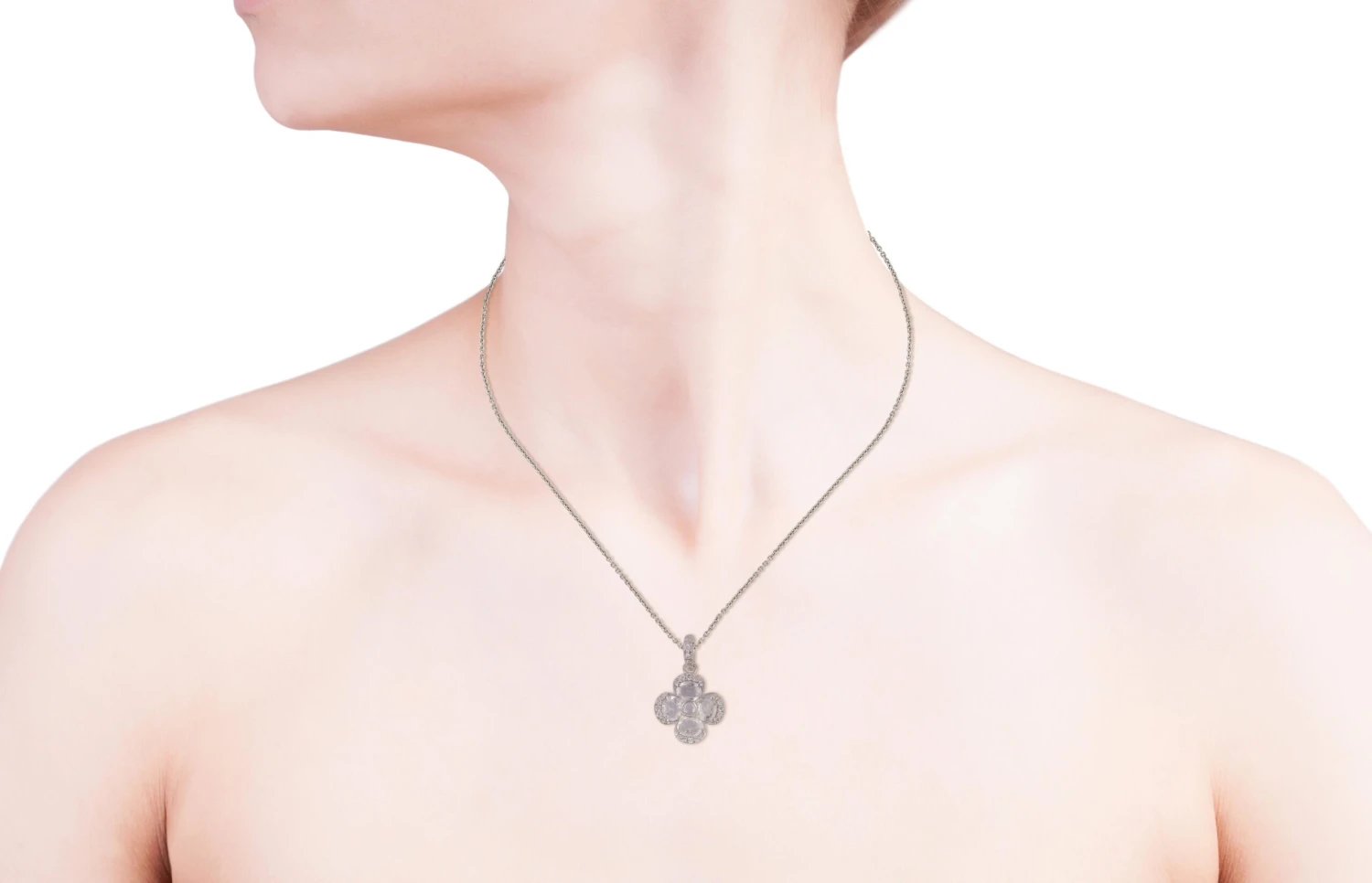 1.42 Carat Oval Cut White Sapphire Pendant chain Necklace in 18K White Gold with Diamond