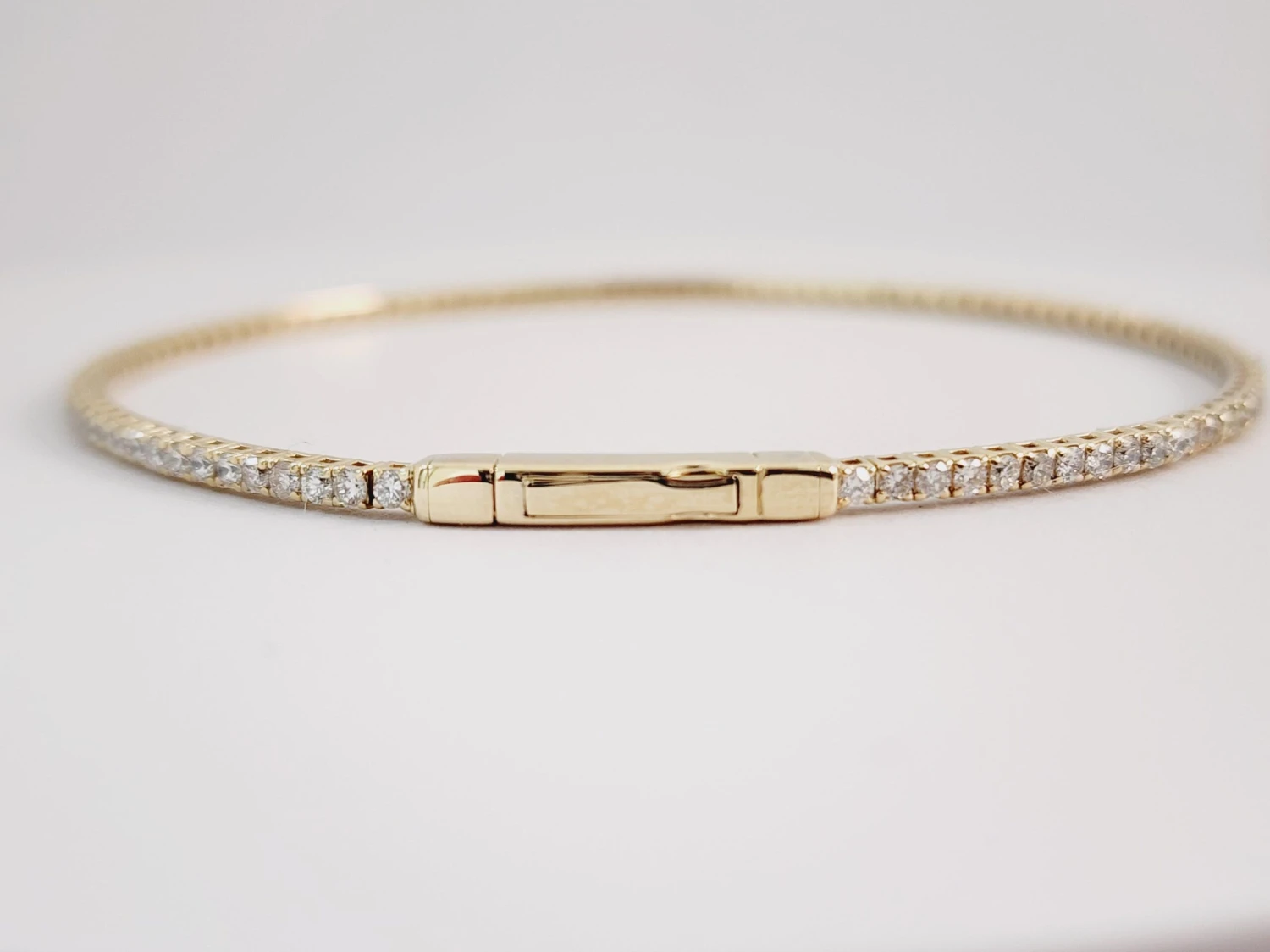 Natural Diamonds 1.55 ctw flexible full all the way around bangle yellow gold 14k 7 Inch.