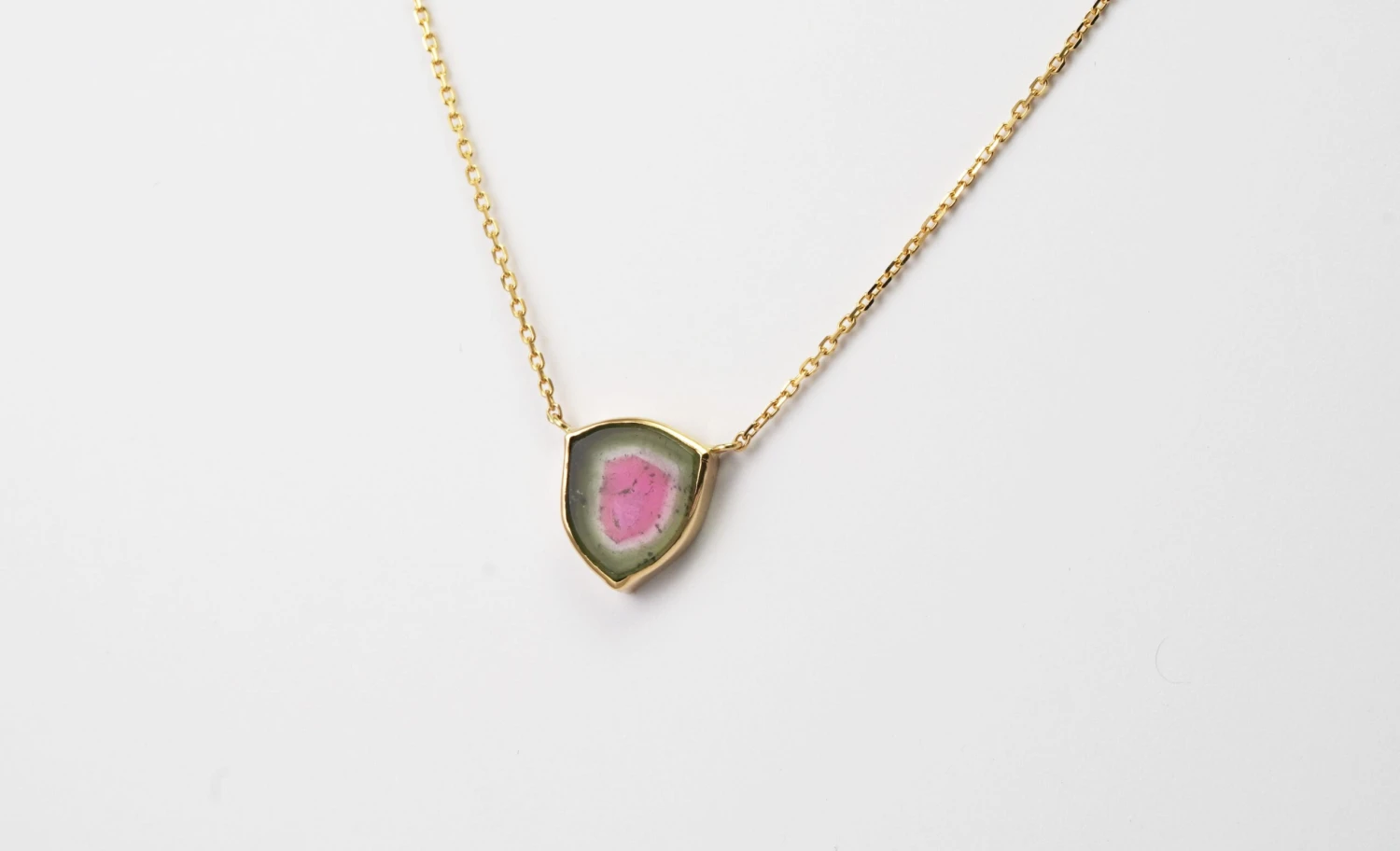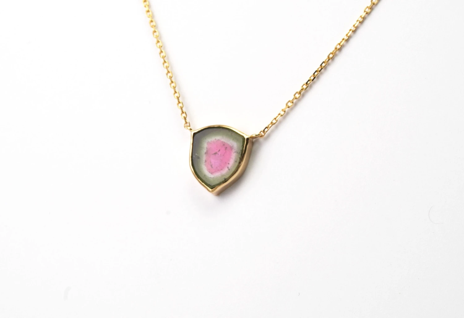 14 kt Gold Necklace with Tourmaline Watermelon