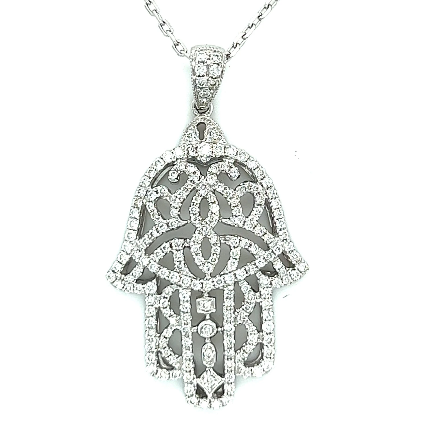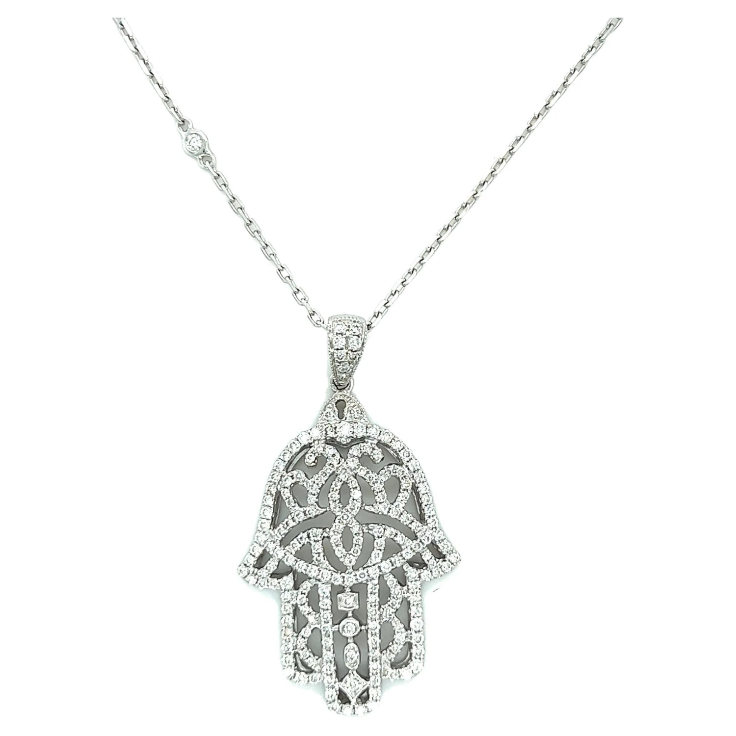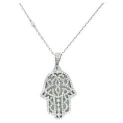 Bring a bit of good luck and protection into your life with this 18 K White Gold Diamonds Protection Hand Necklace.
