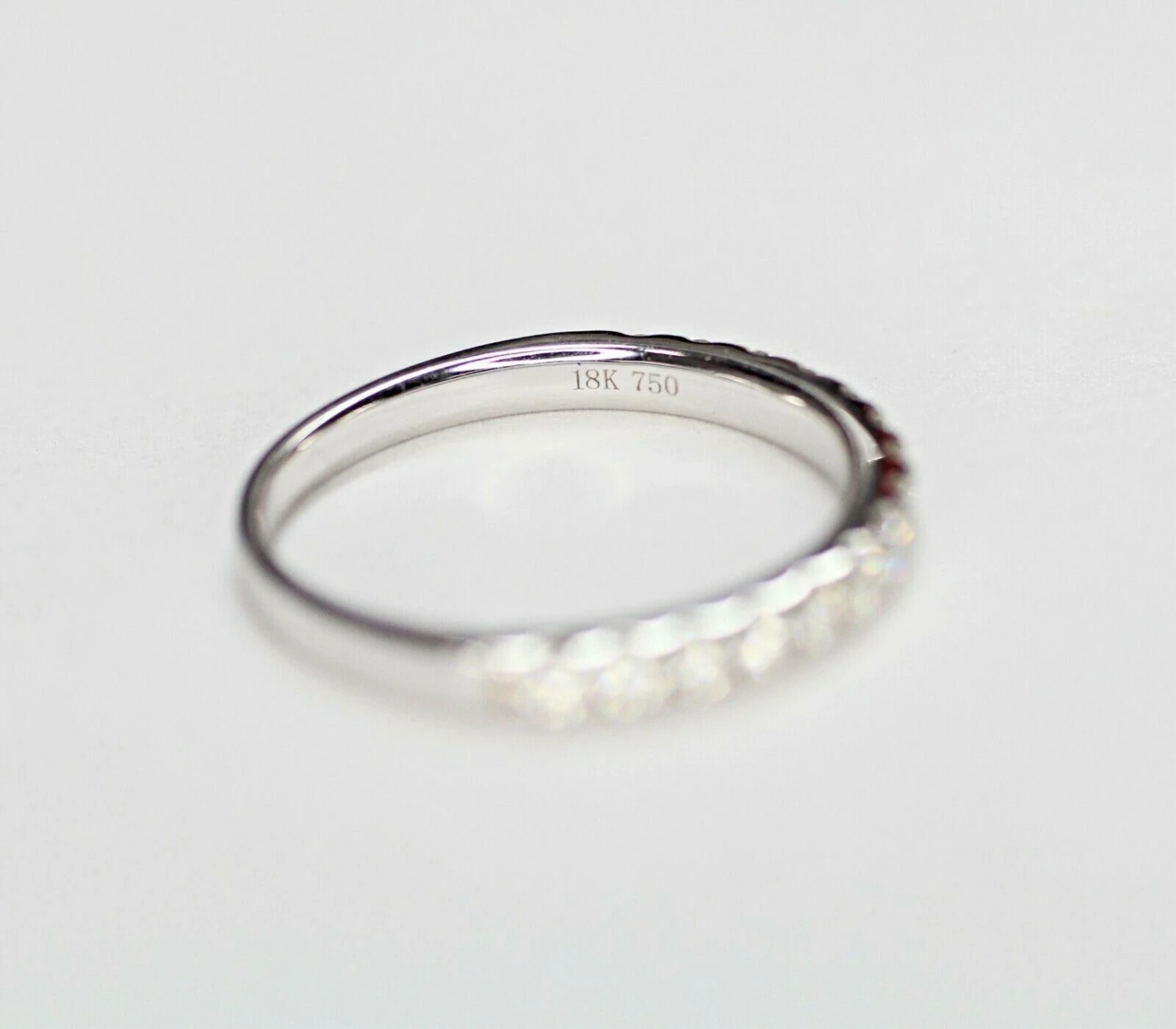 Beautiful 18K white gold wedding band ring with diamonds. This ring contains 15 pieces of round cut diamonds in approximately 0.30 carat total weight in H color SI1 stone clarity. The current ring size is 6US, but it can be resized to fit any finger.