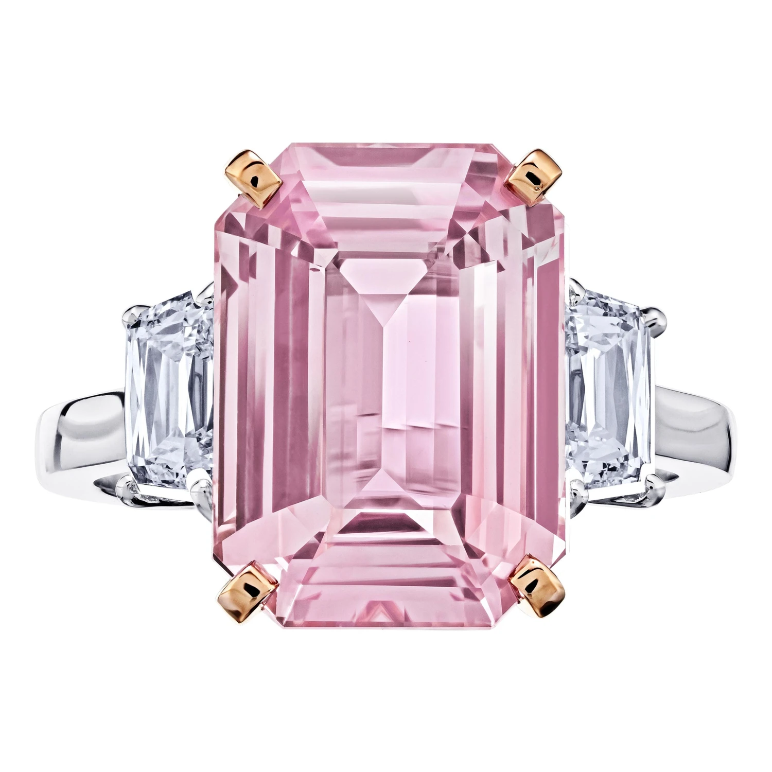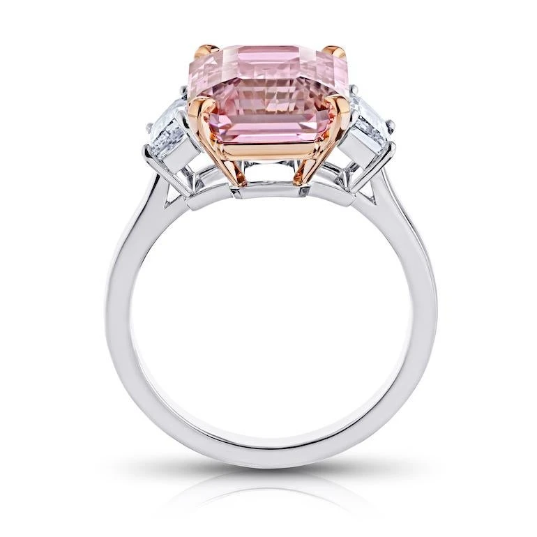 8.09 carat Emerald Pink Sapphire with Diamonds .89 carats set in a handmade Platinum / Rose Gold ring
