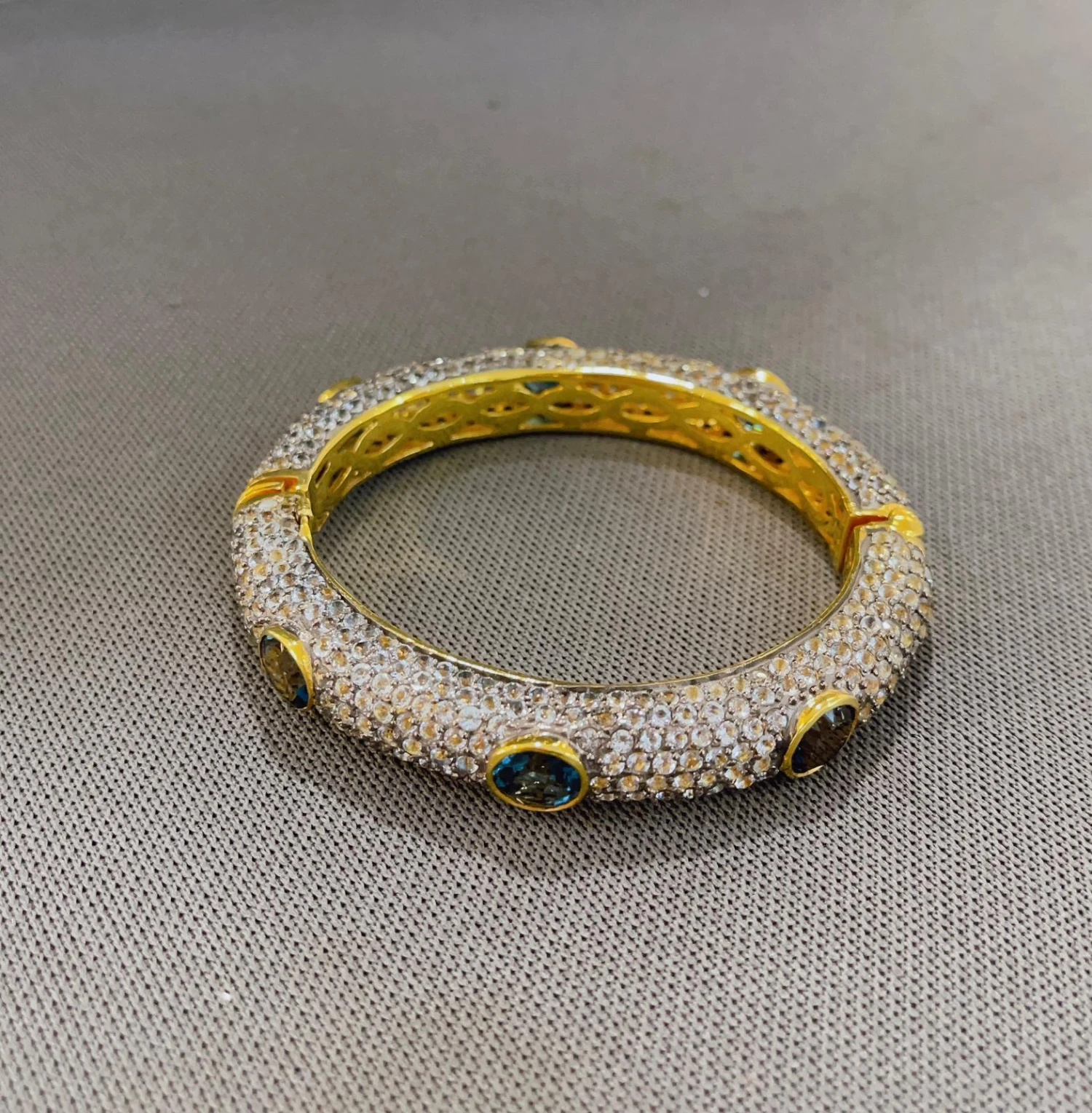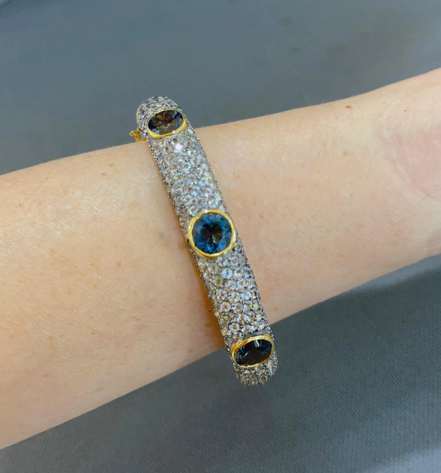 Bochic “Capri” London Topaz & White Zircon Bangle Set In 22K Gold & Silver