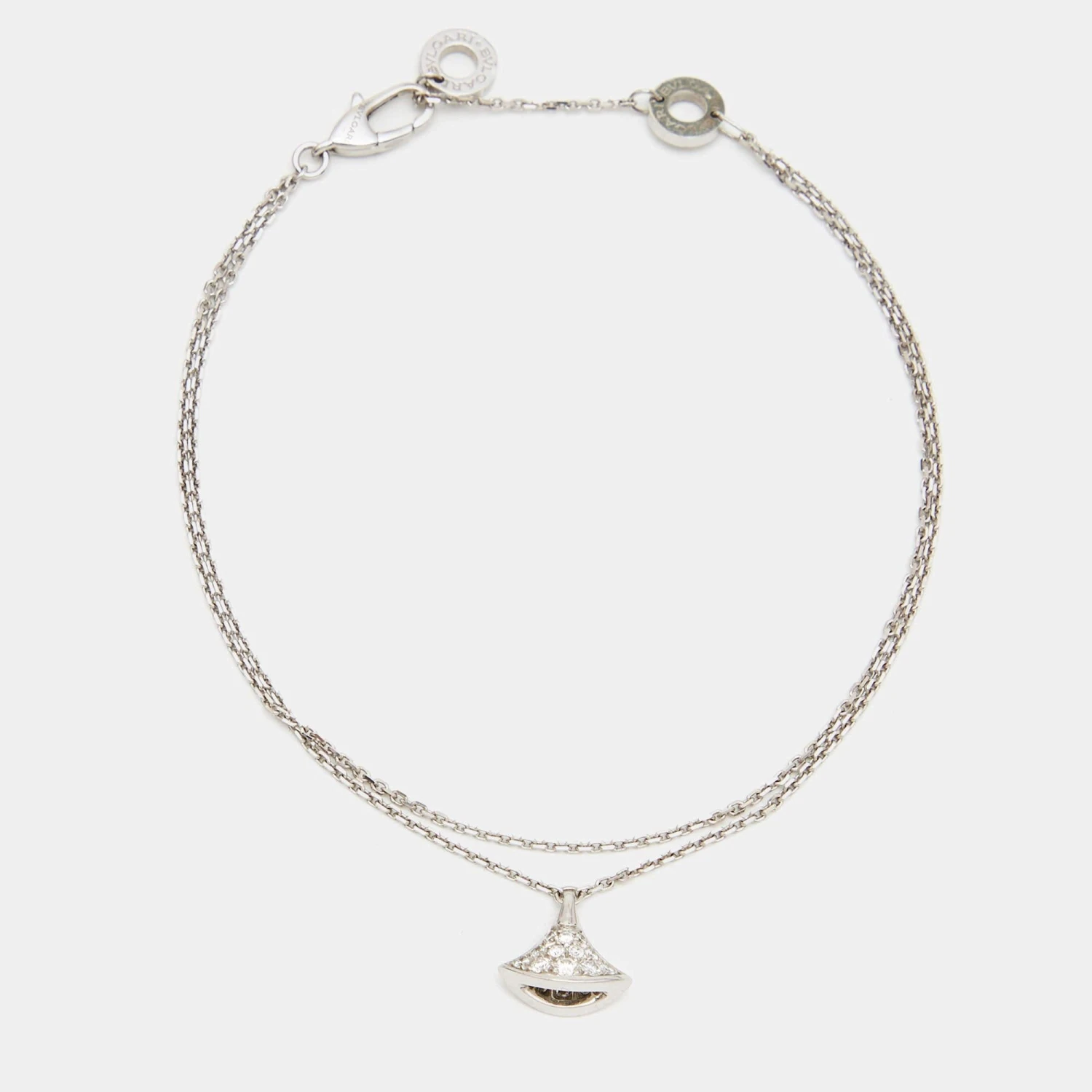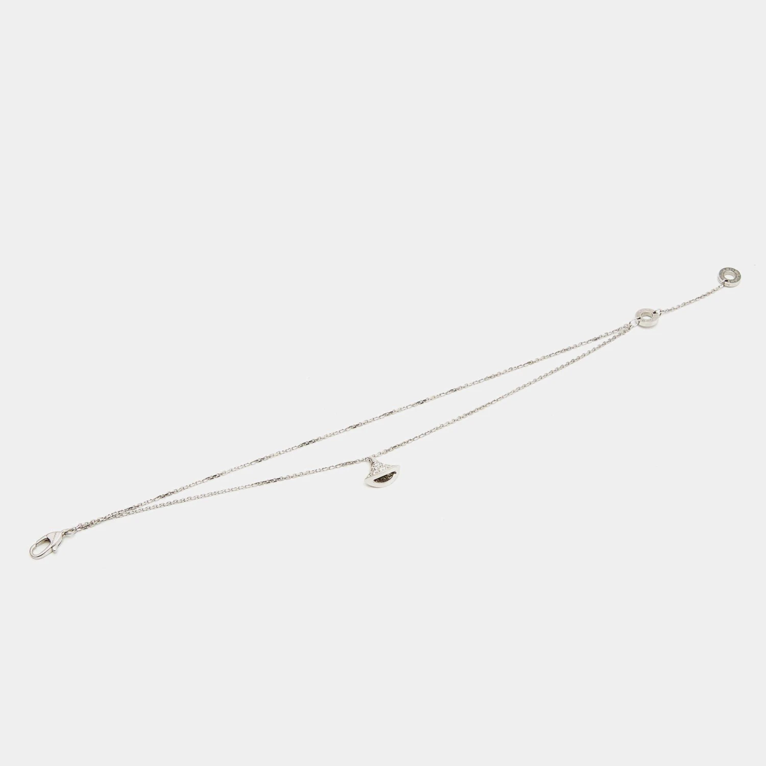 Elevate your look instantly with this Bvlgari bracelet. Crafted from 18k white gold in a simple style with a classic design, this piece carries a beautiful pendant that is encrusted with diamonds. Easy to wear and versatile in use, you can pair this piece with multiple outfits.