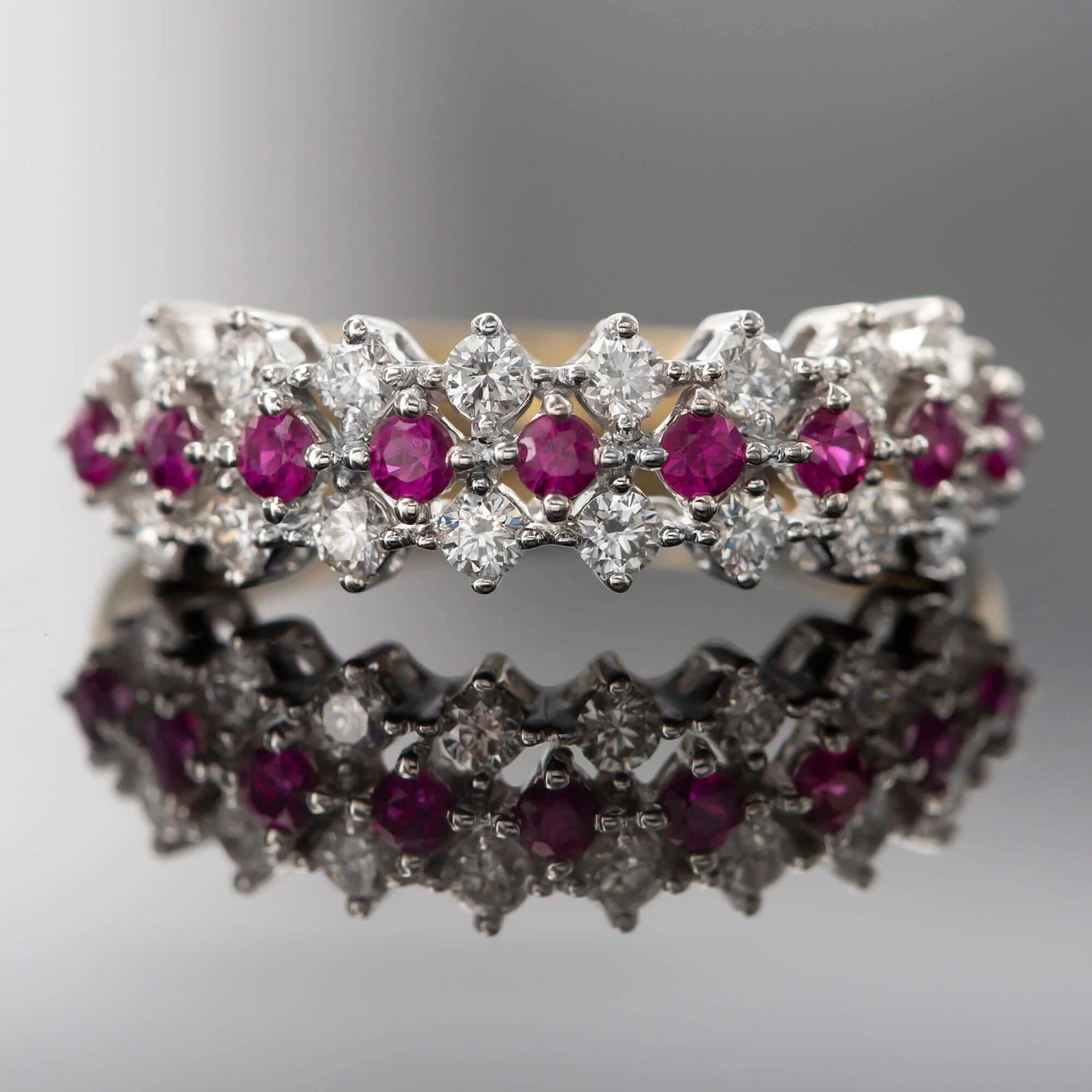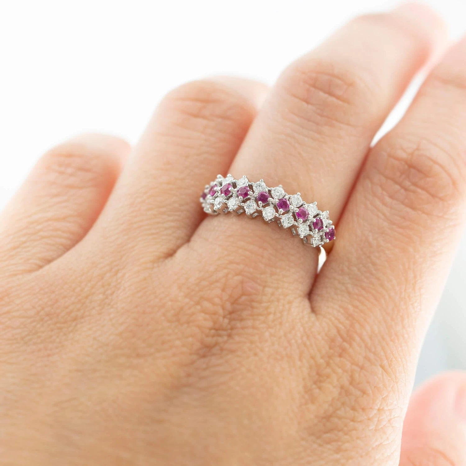 This ring would suit a Ruby wedding anniversary (40th anniversary) or any special milestone. It offers a big look, but is set close to the finger, so it is more practical to be worn and enjoyed everyday.