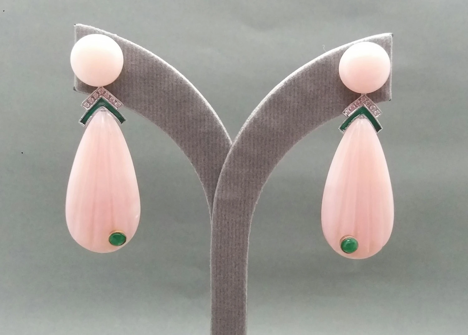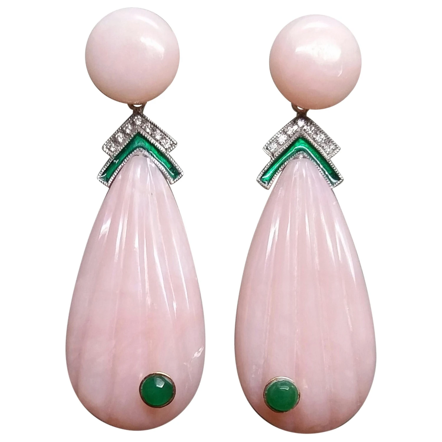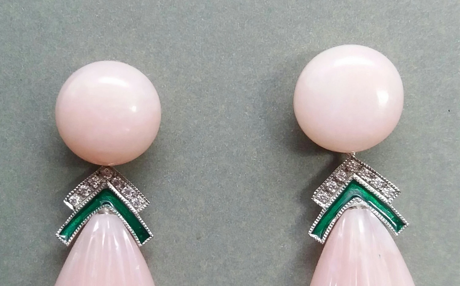 In 1978 our workshop started in Italy to make simple-chic Art Deco style jewellery, completely handmade and using the typical gemstones of that period (1920-1930 circa) : genuine Jades, Turquoise , Coral, Lapis Lazuli and other color gemstones set in white Gold, Diamonds and Enamels. We always put particular attention on the details of the antique jewels,like « Milgrain » setting and light use of gold, so our pieces are affordable, easy and comfortable to wear. Today we also offer our experience to realize your own jewellery design, our workshop can also cut, carve , polish and set all kinds of gemstones