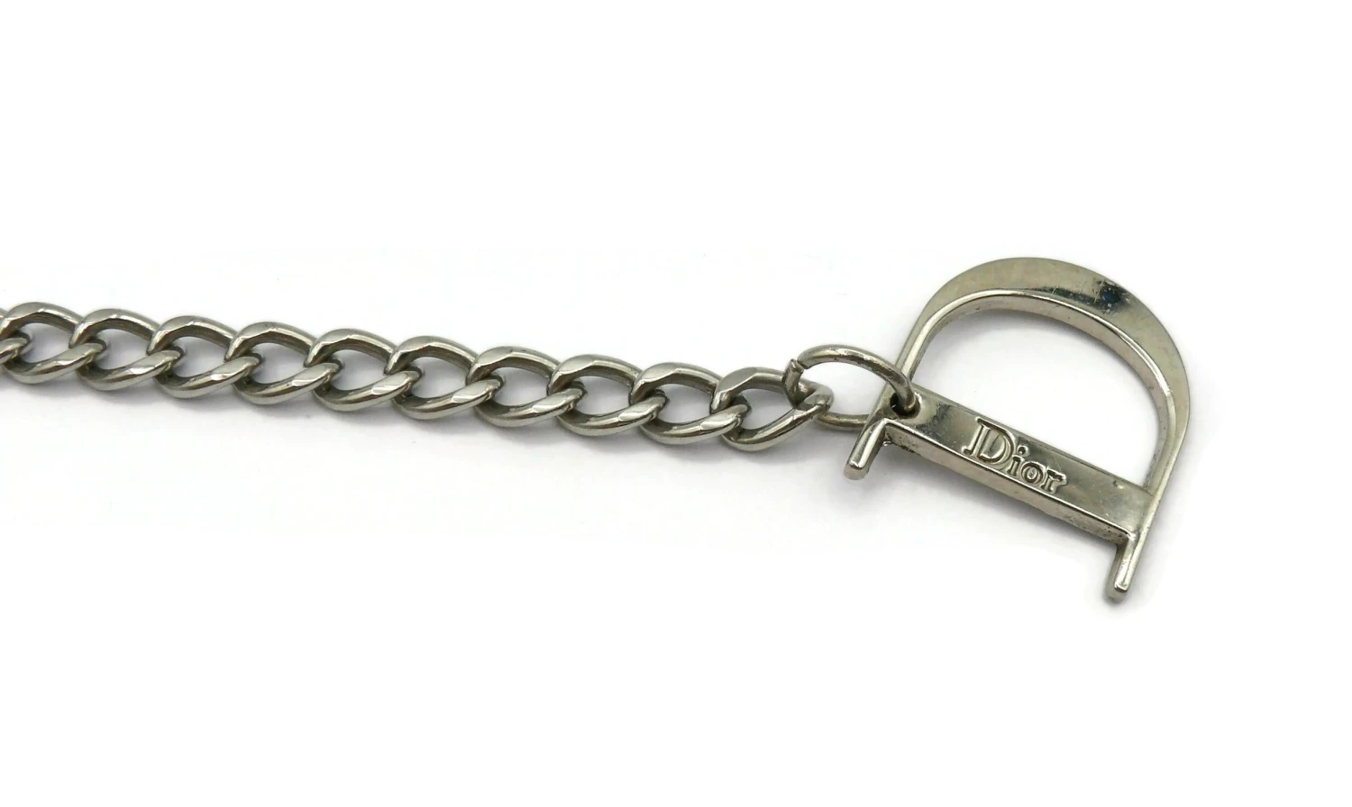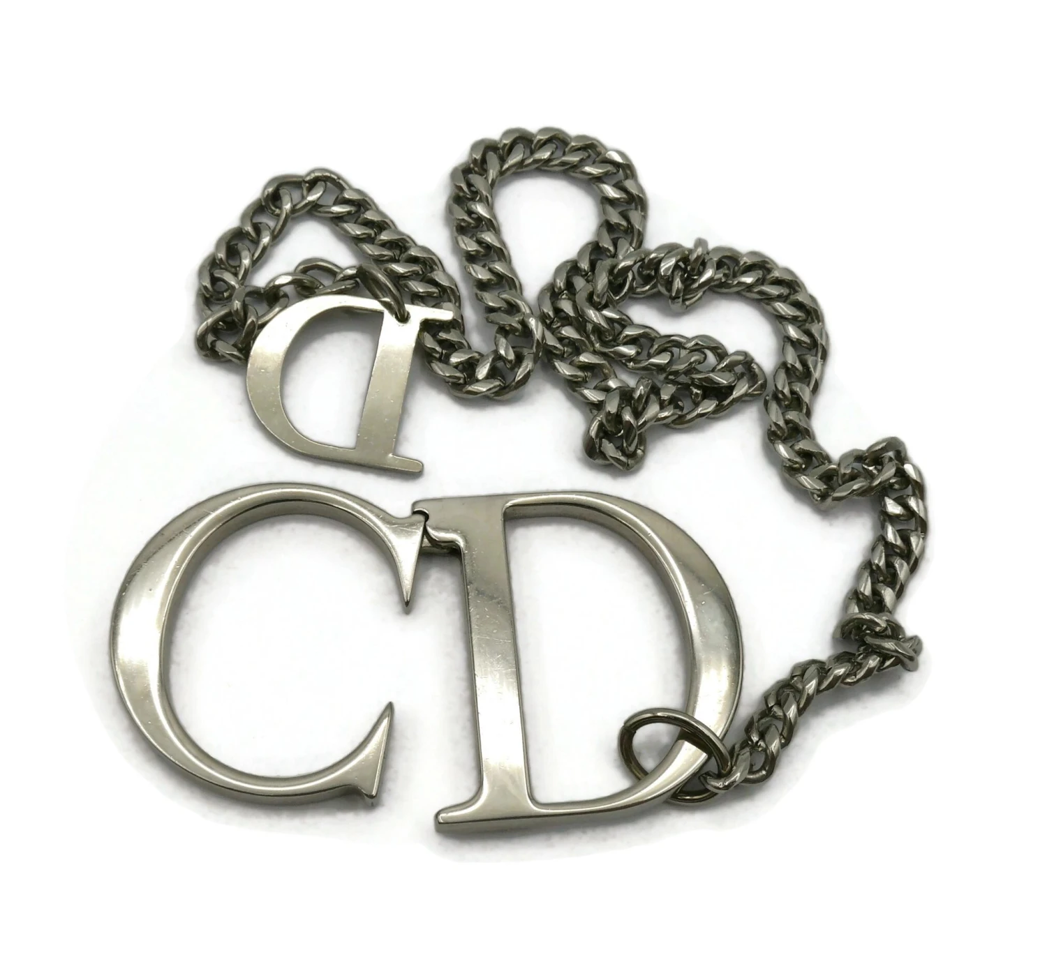 Embossed CHRISTIAN DIOR on the CD logo and DIOR on the D hoop.