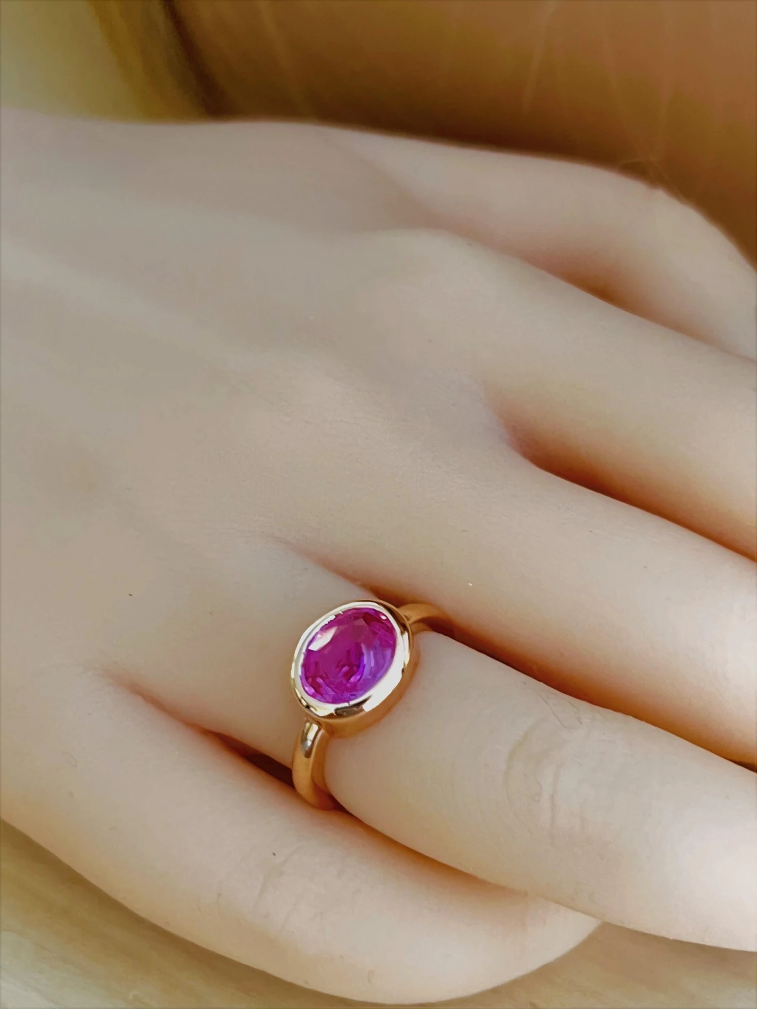 Eighteen karat high dome yellow gold Ceylon pink sapphire solitaire ring