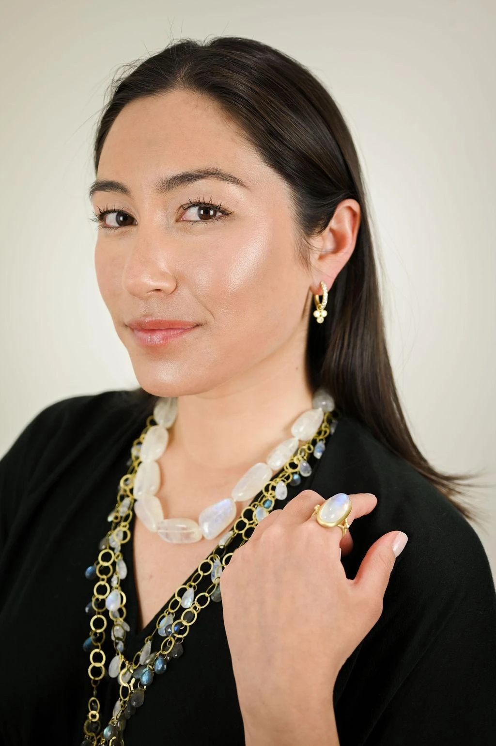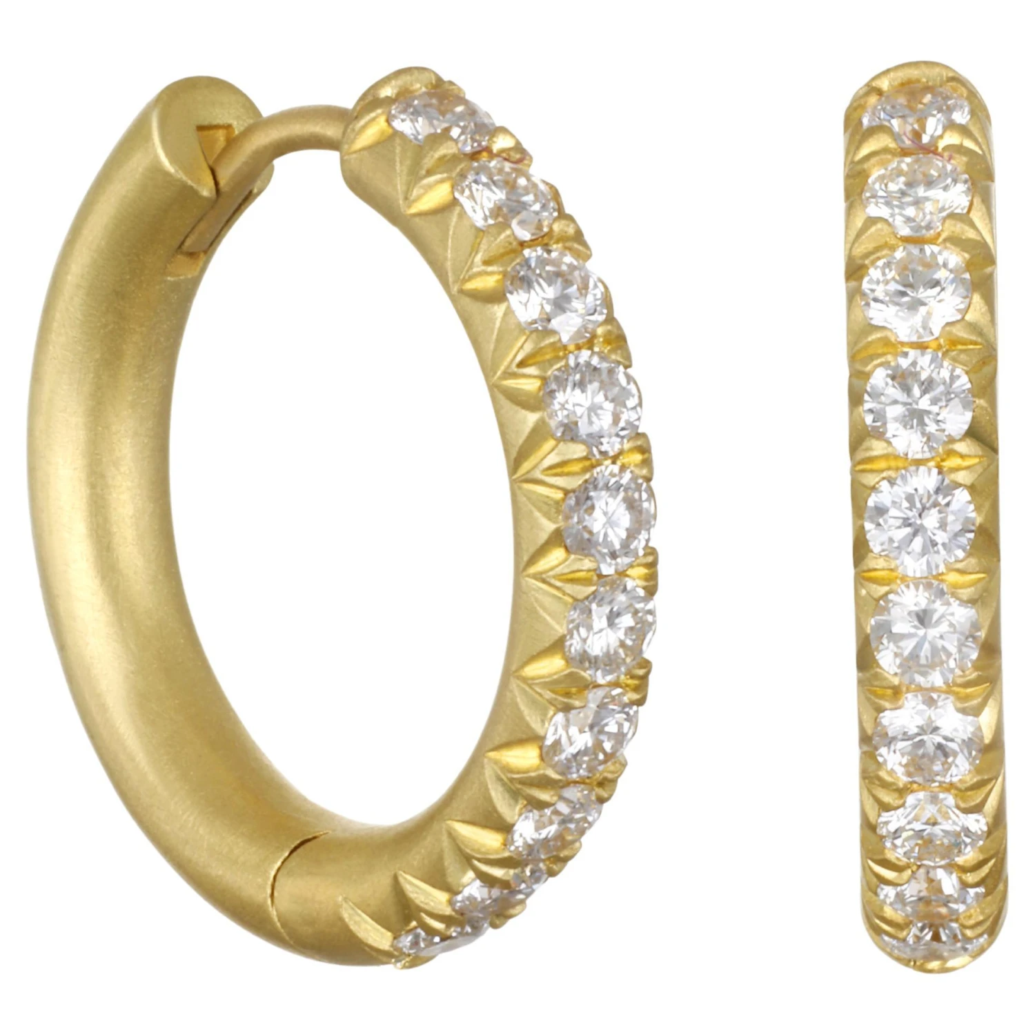 Other photos show Micro Pave Hinged Hoops with Triple Diamond Drops, sold separately.