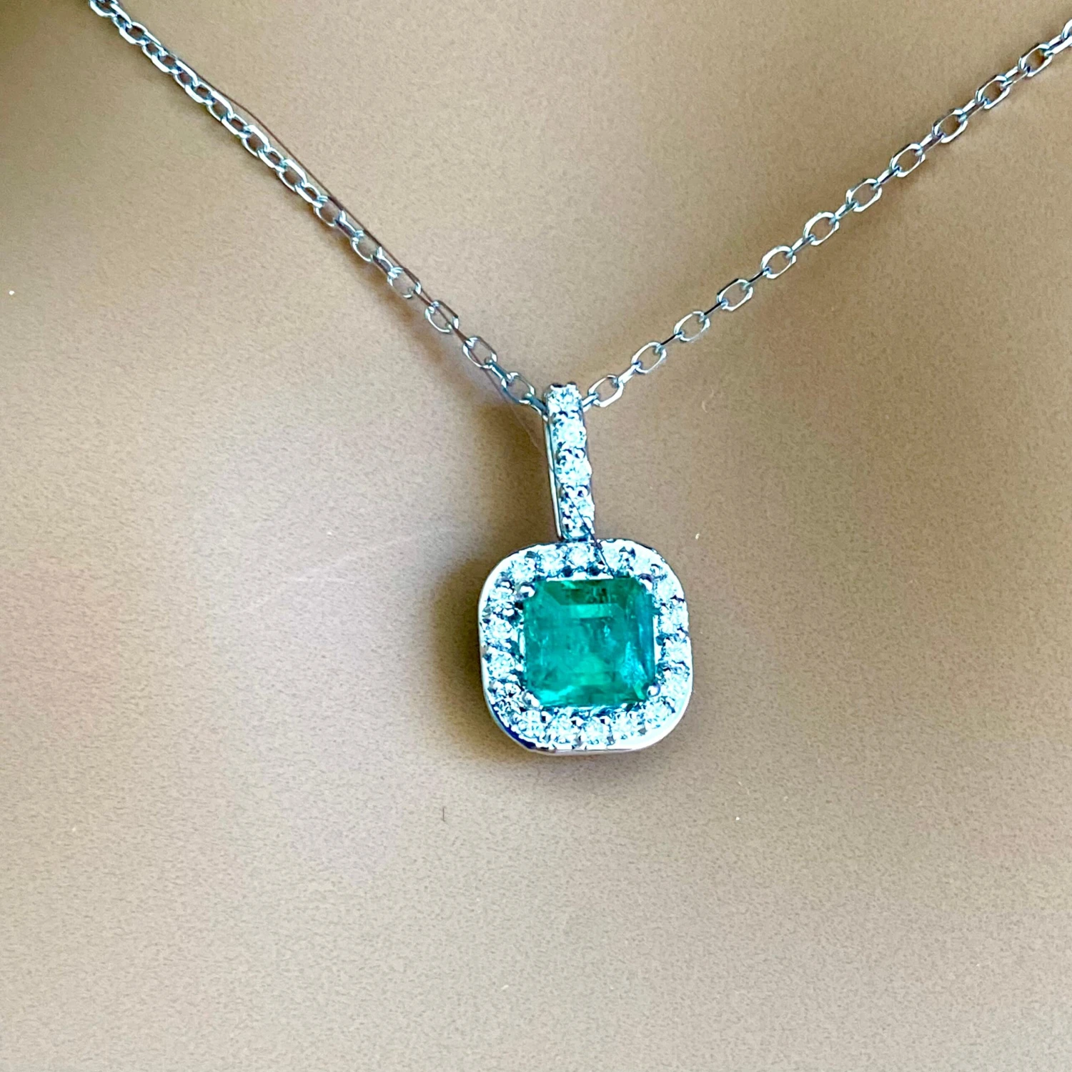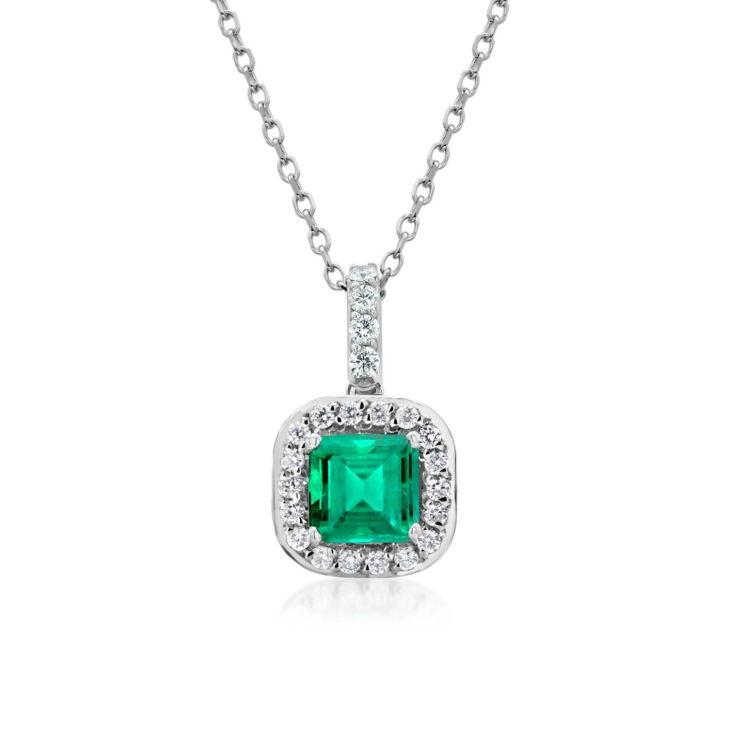14 karats white gold layering pendant with halo diamond emerald pendant