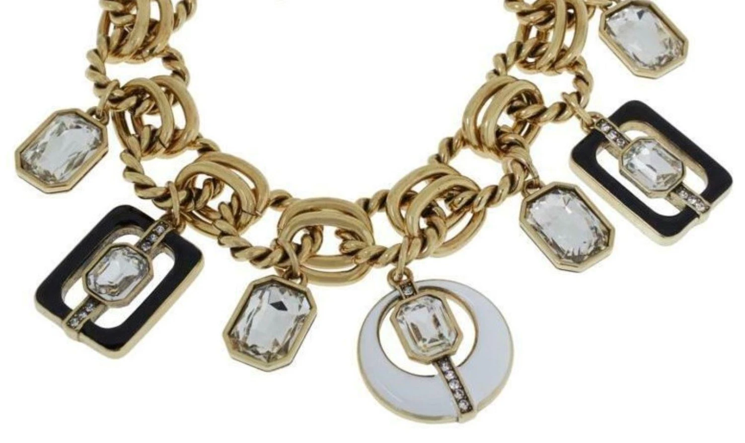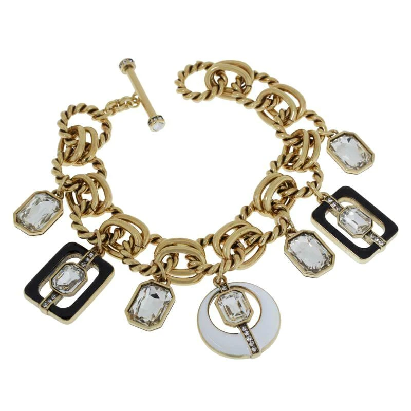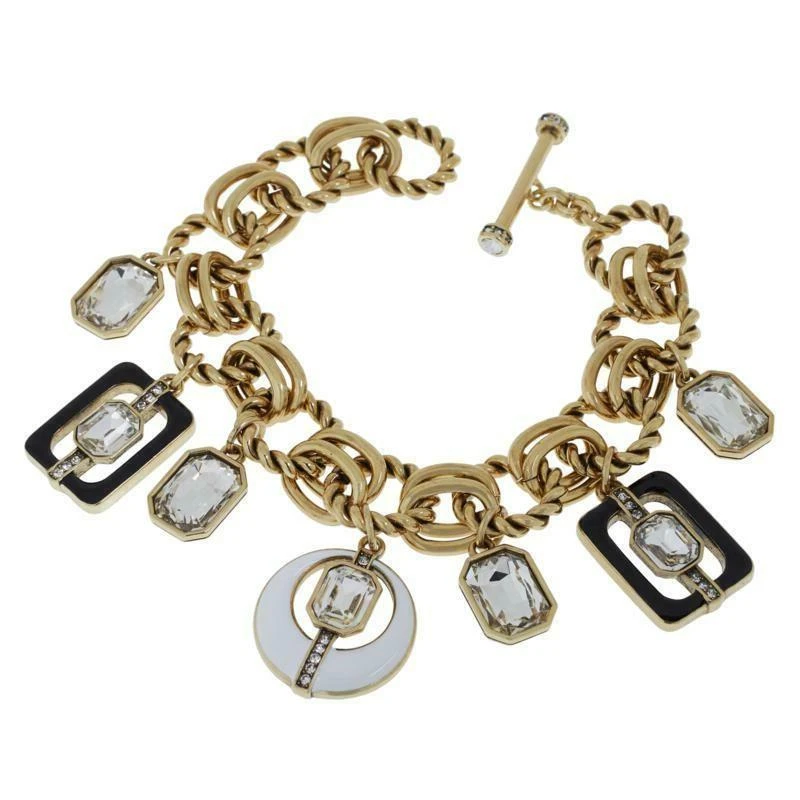 Awesome Heidi Daus « Mod Squad » Enamel and Crystal Charm Toggle Clasp Bracelet. Oxidized Bronze tone mounting with textured finish. Approx. 7.75″ long x 0.75″ wide. More Beautiful in real time…Chic and sure to be admired complement to your outfit!