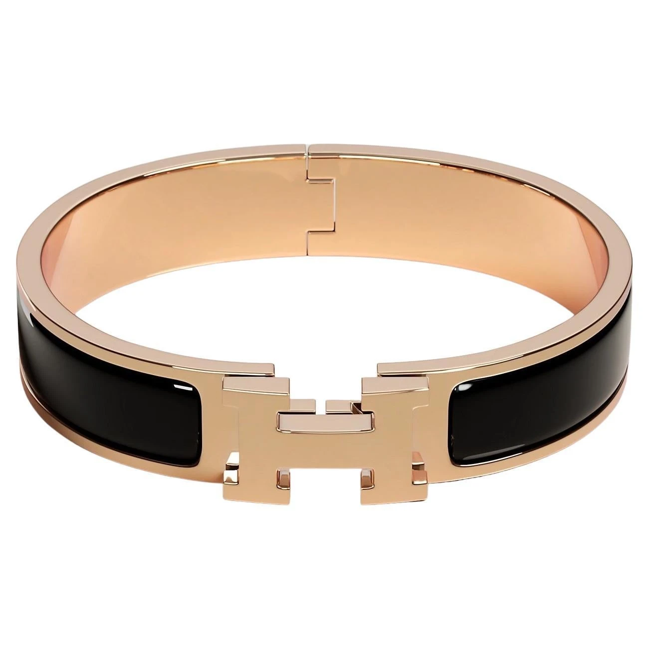 Narrow bracelet in enamel with rose gold-plated hardware.