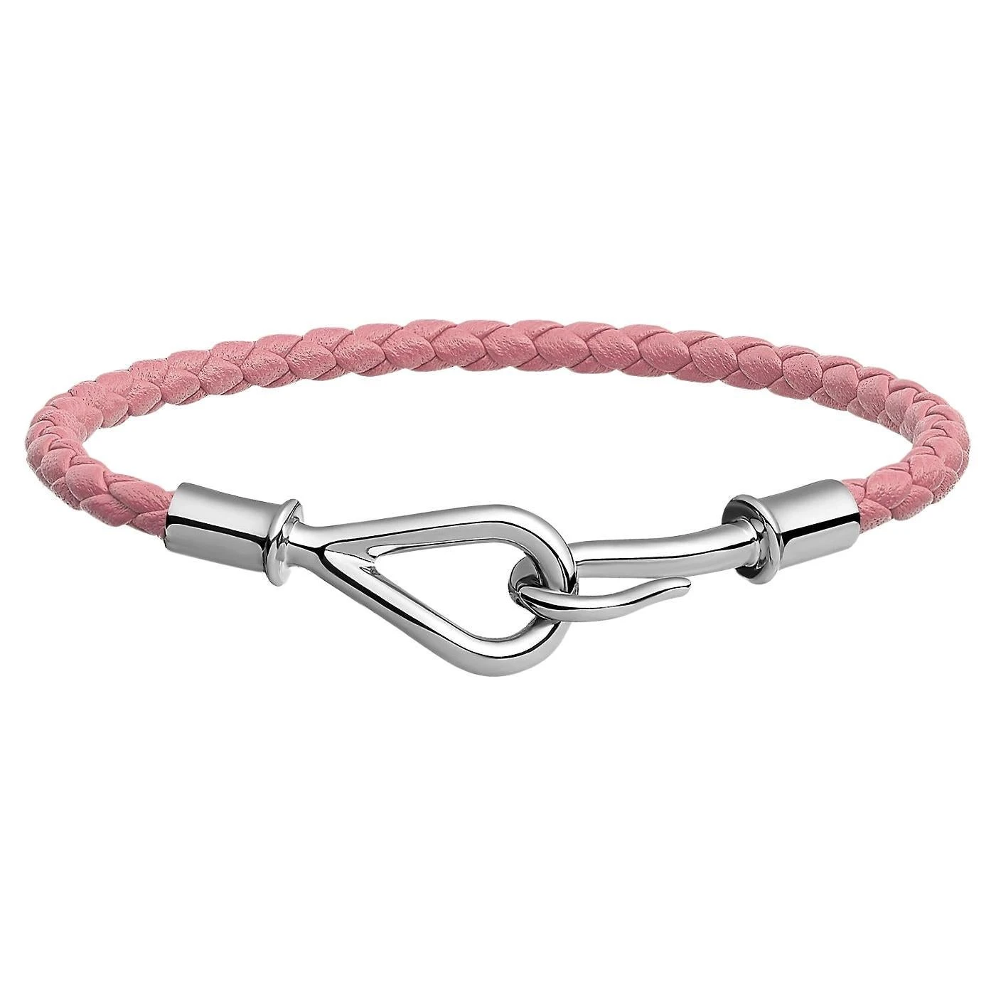 Braided bracelet in Swift calfskin with palladium plated Jumbo closure.