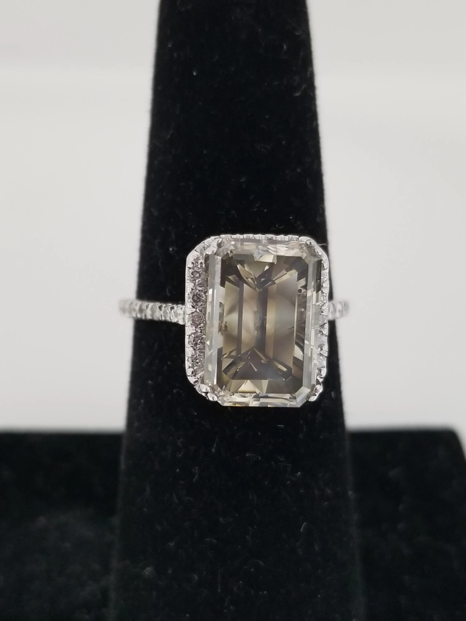 All Natural Fancy Color Gray Emerald Cut Diamond Ring Weighing 5.51 carats by IGI . Elegance for every occasion.