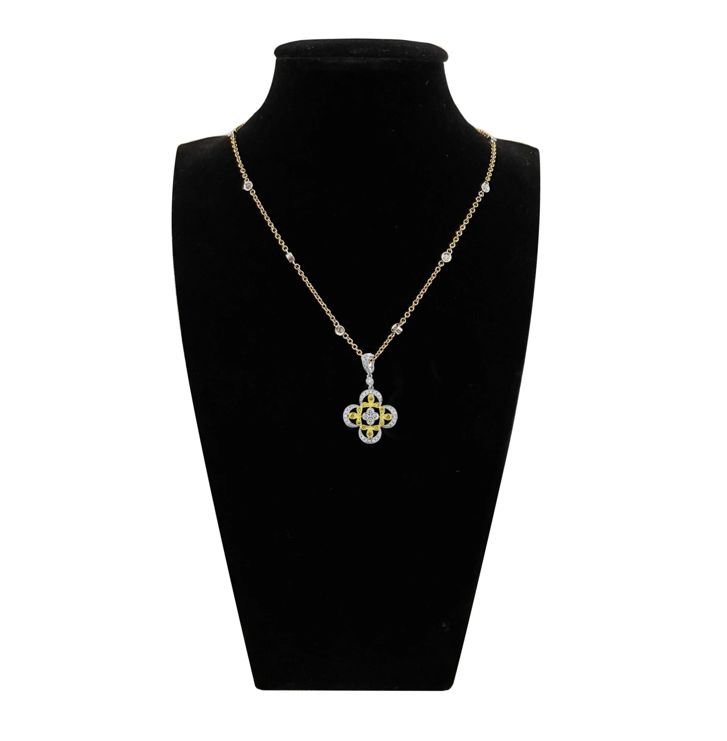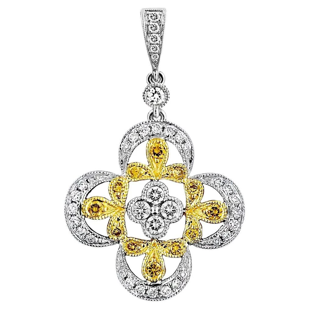 This diamond pendant has 0.39 total carat weight of F/G color and fancy yellows of VS clarity diamonds.