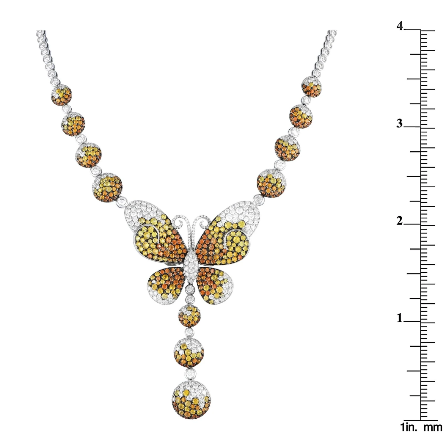 This necklace from Maggioro’s Flight of Fantasy Collection is feminine and lovely. It is made of 18K white gold and boasts a design that features a gorgeous butterfly motif with spherical accents. All of which are set with 10.85 carats of diamonds and 11.70 carats of yellow and orange sapphires.
