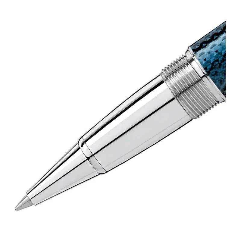 Engraved hexagon pattern, coated with blue lacquer, inlaid with Montblanc emblem