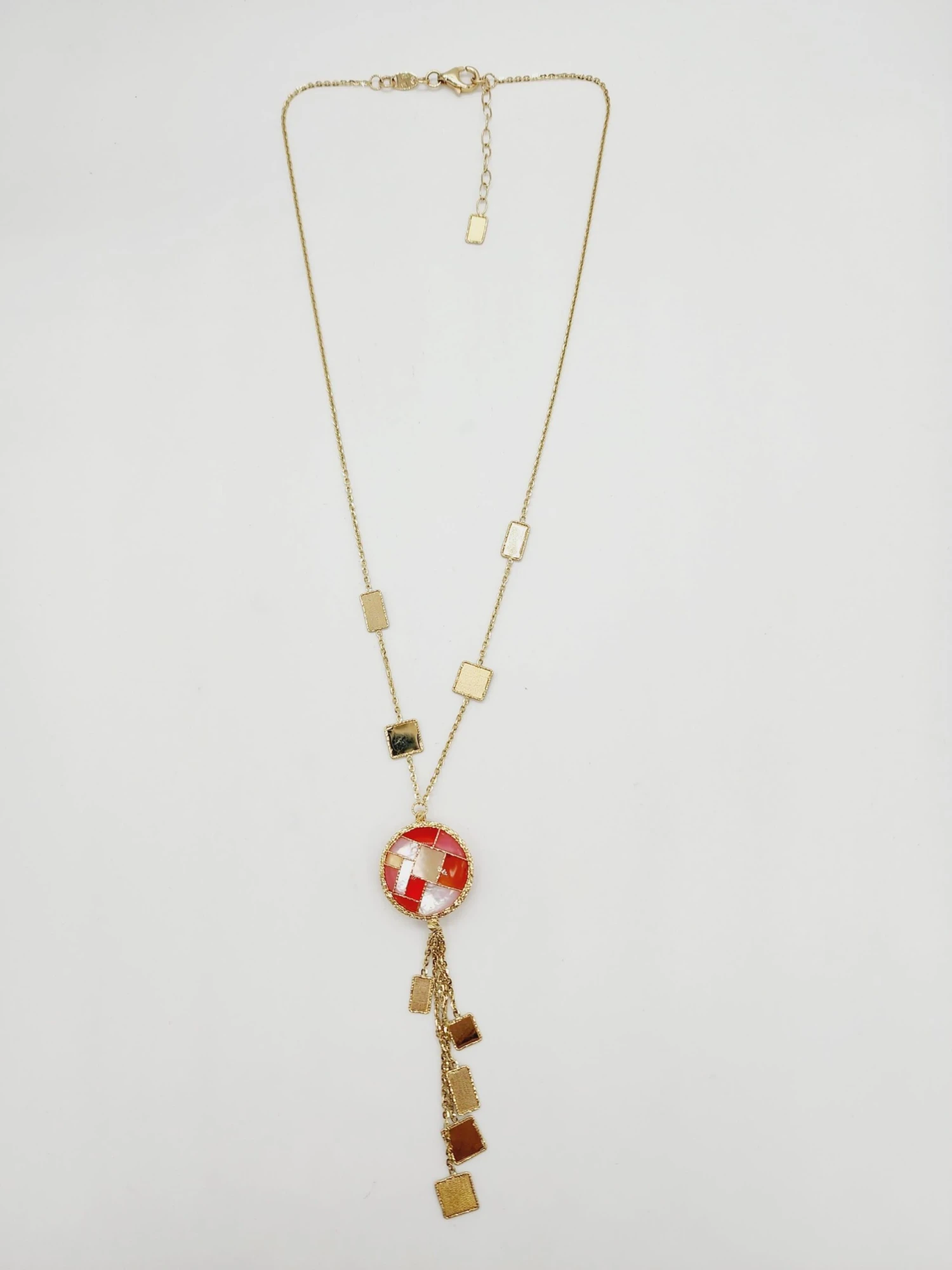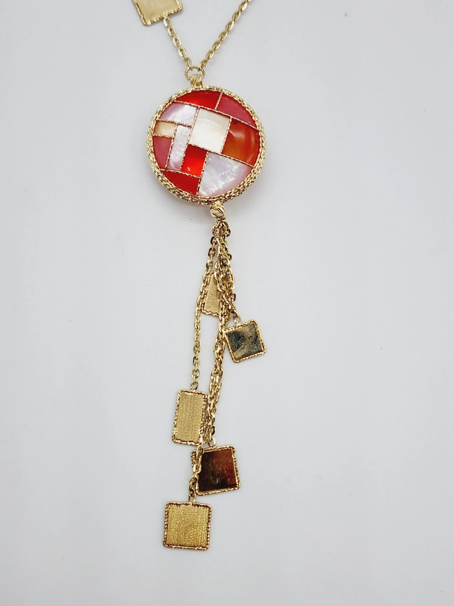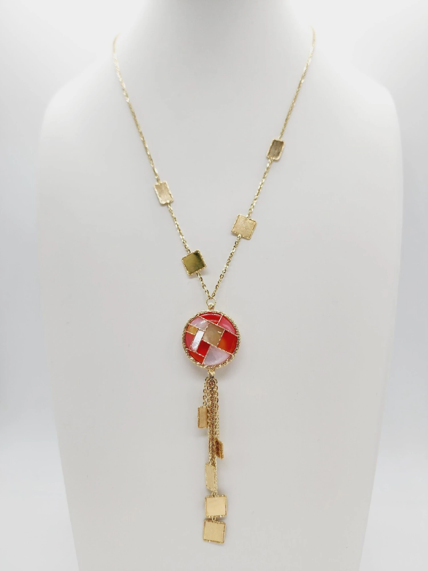 Mother of Pearl Yellow Gold Link Chain Necklace, Lobster closure. Length is 16 inches.