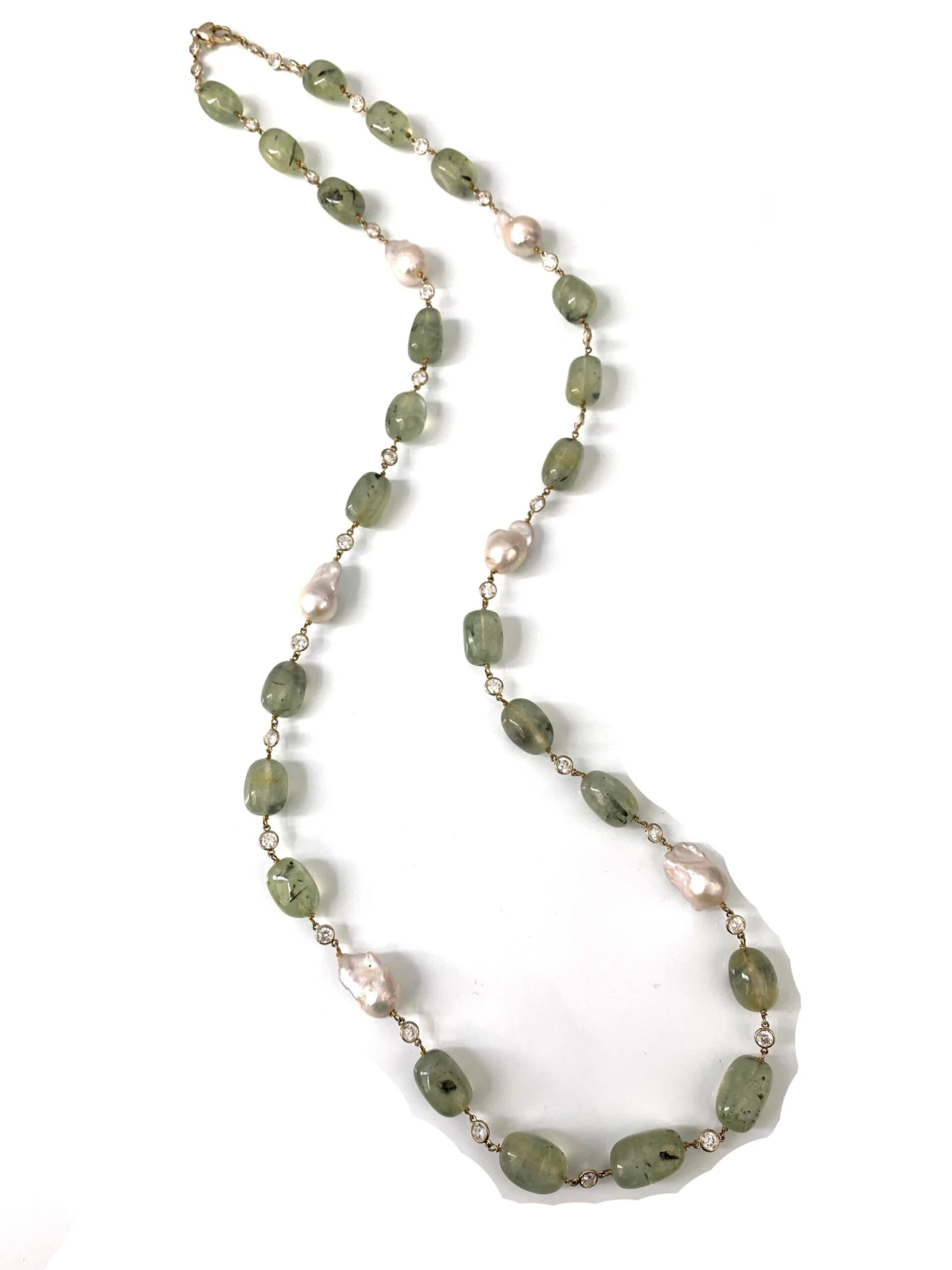 Can be worn alone, doubled or layer with other necklaces. Beautiful greenish color with black rutile. Each stone measured roughly 15mm by 10mm.