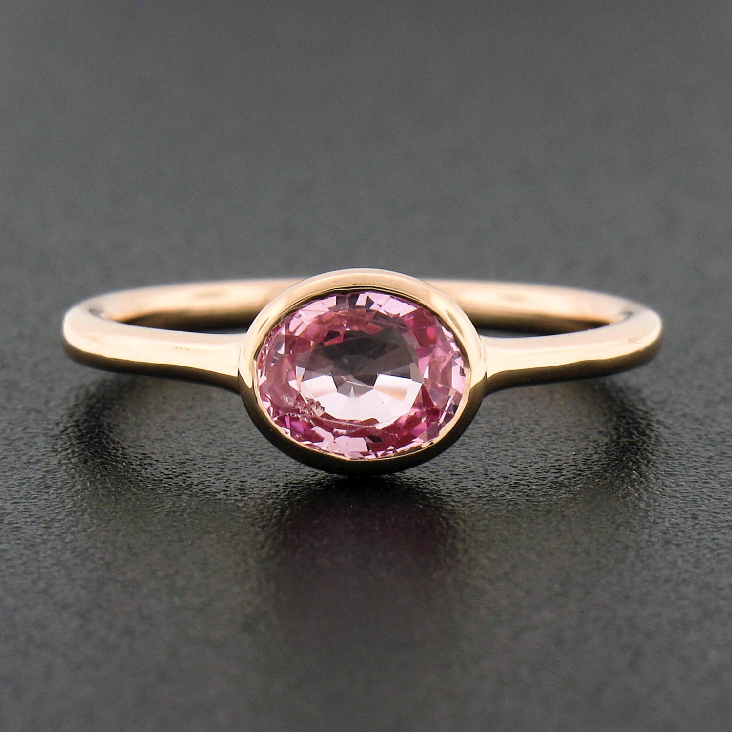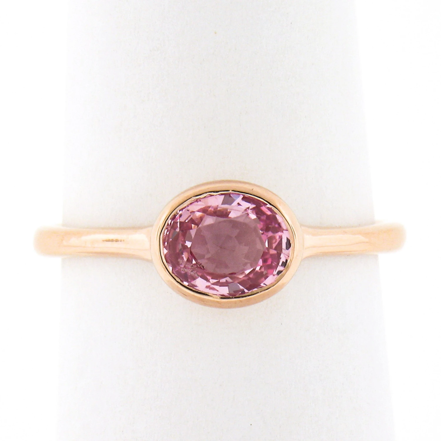 (1) Natural Genuine Sapphire – Oval Brilliant Cut – Bezel Set – Unique Orangy Pink Color – 1.29ct (exact – certified)