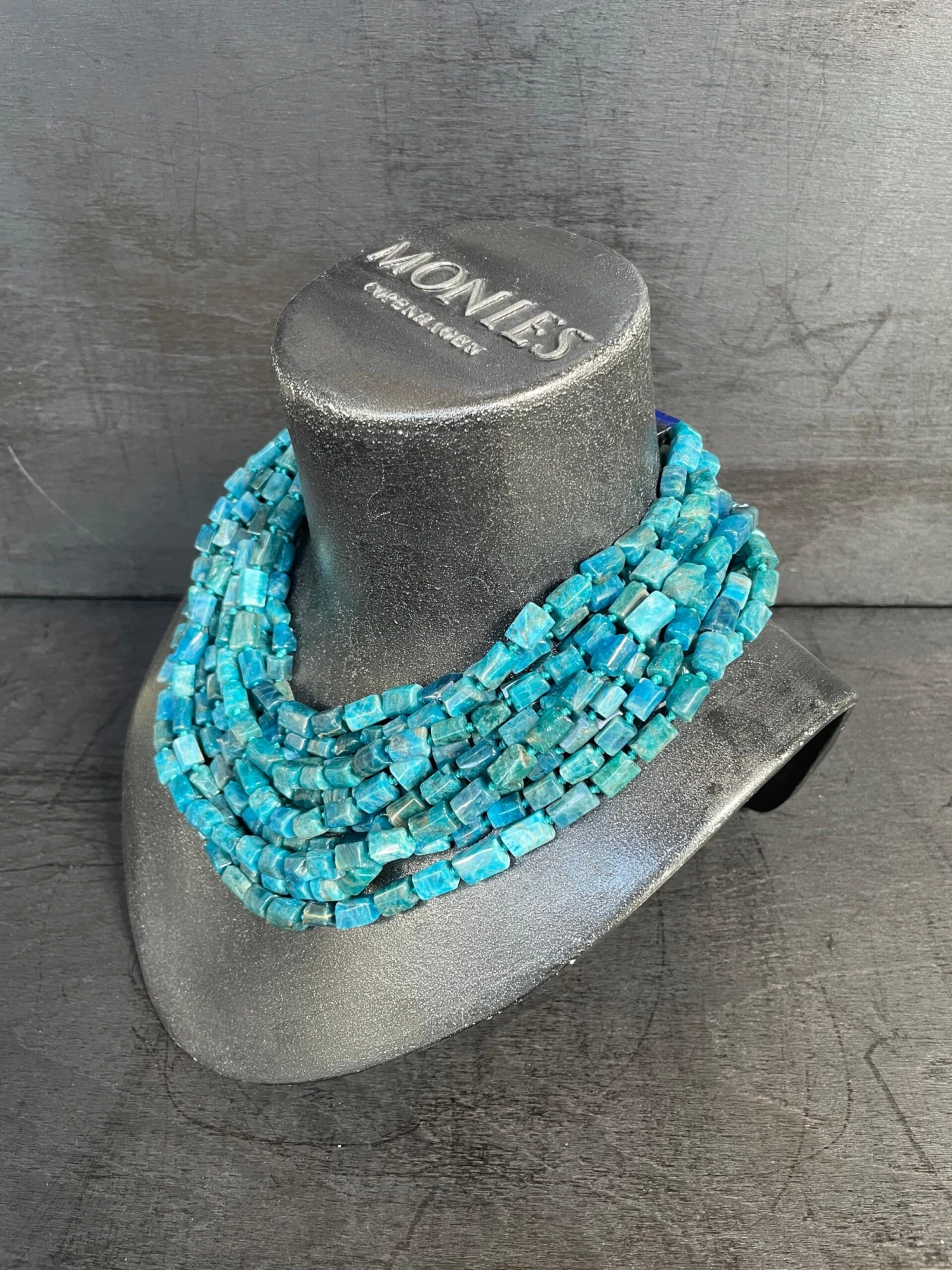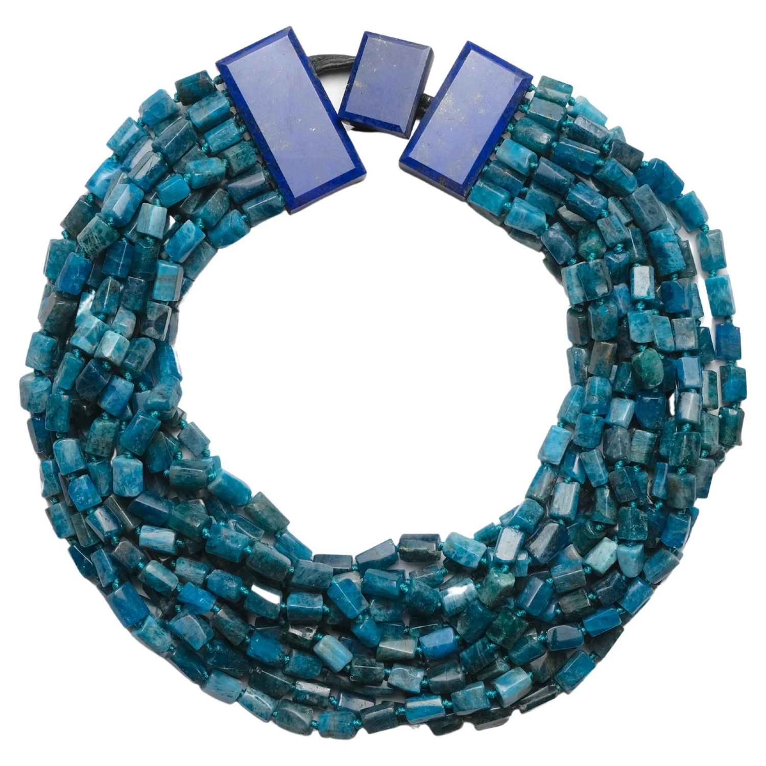 Made in Blue Chrysolite, Lapis Lazuli & Horn with a leather clasp.