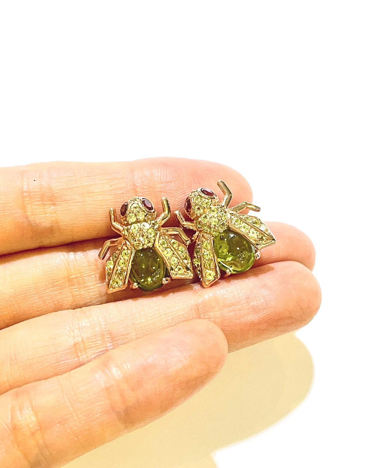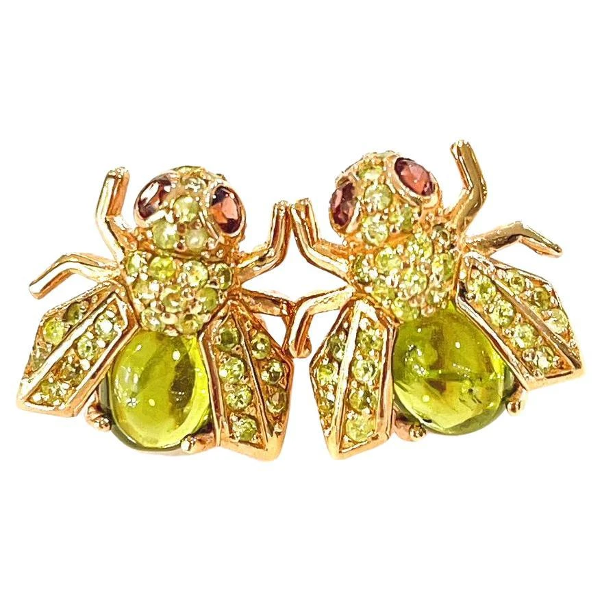 Vintage oriental style. Featuring Light Green Tourmaline cabochons as the main body, weighing approximately 3 carats. Accented by round brilliant cut Green Tsvorite with a total weight of approximately 2.5 carats.