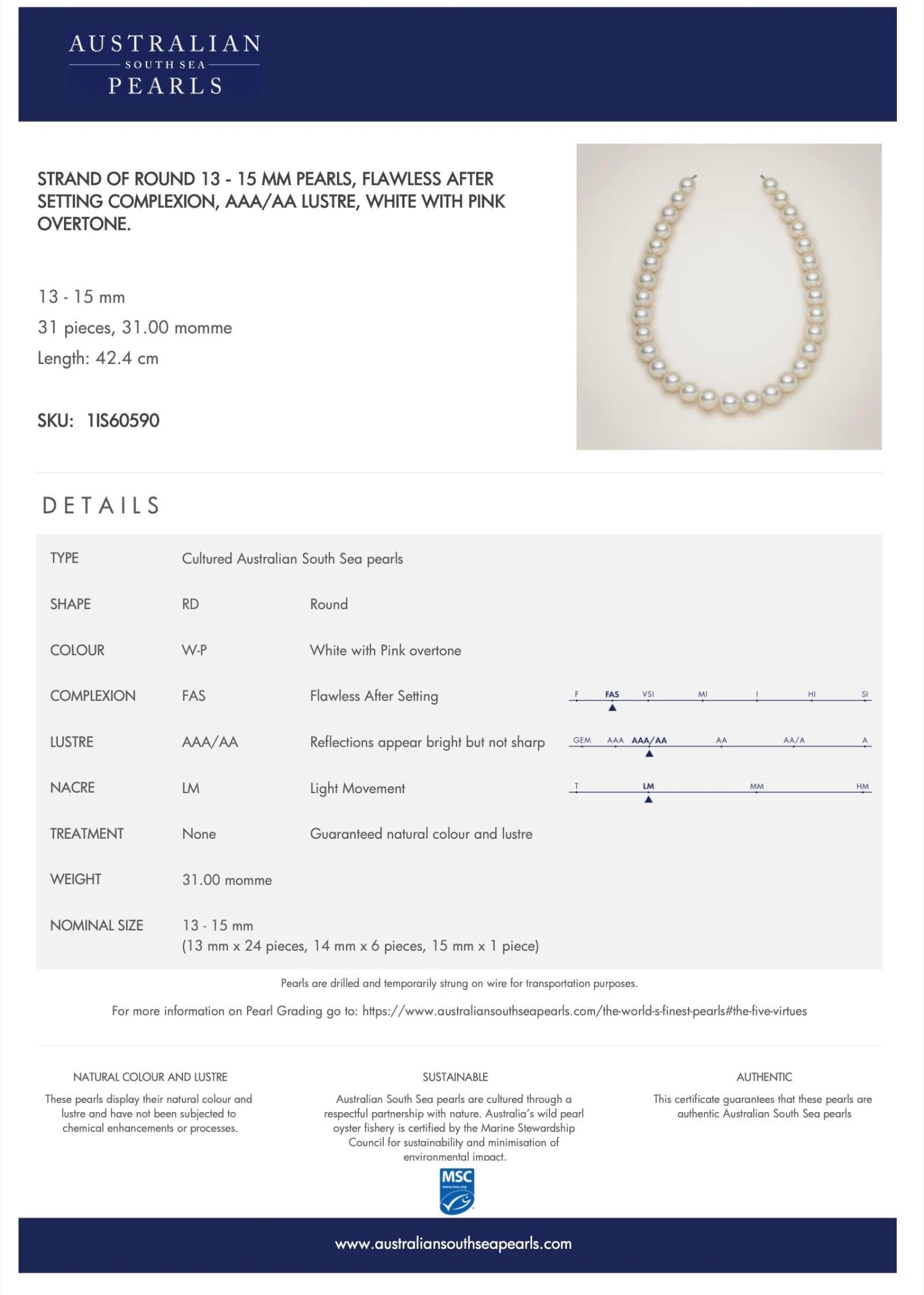 Every pearl is accompanied with a Certificate of Authenticity.