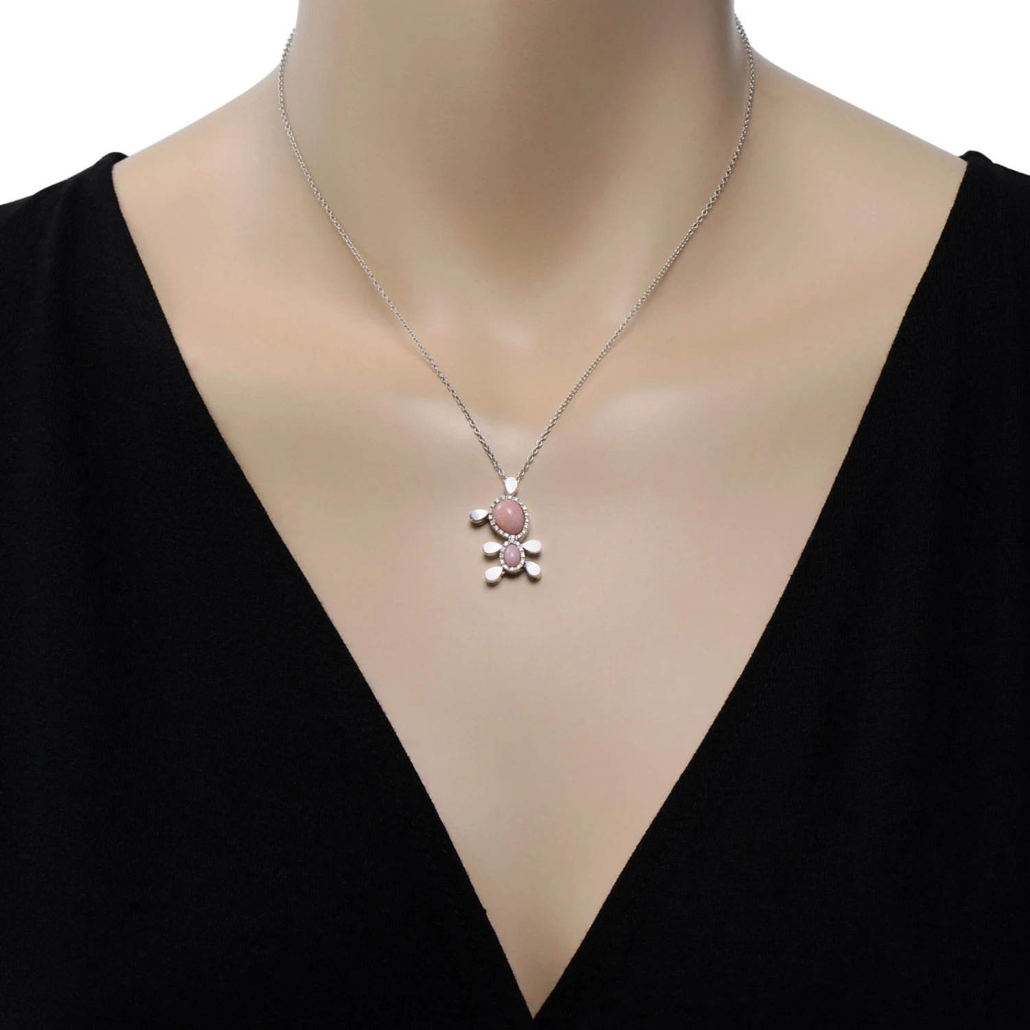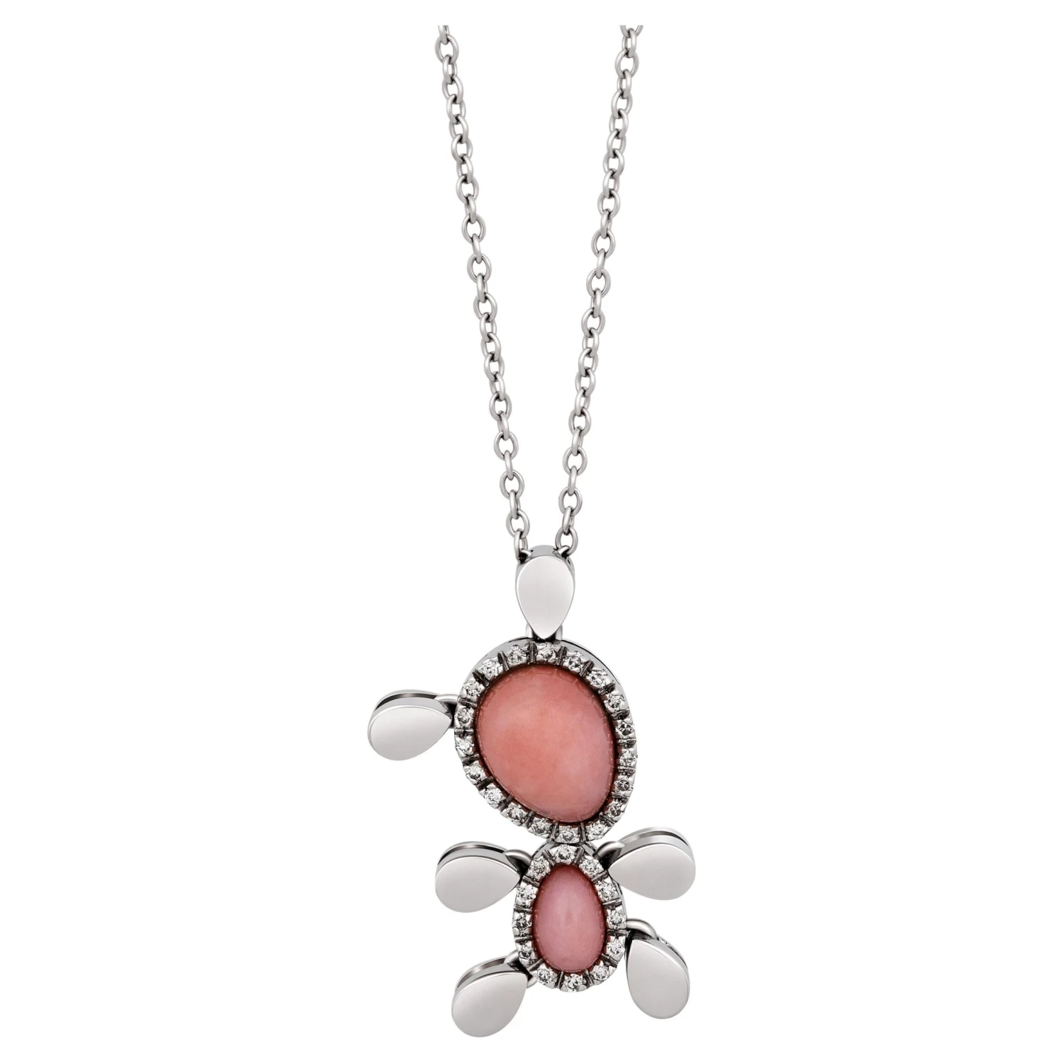 This adorable Piero Milano 18K White Gold Pendant Necklace features shining diamond borders 0.13ct. tw. decorating pink Opal stones 1.5ct. tw. set in a playful animal silhouette. The Decoration Size is 19mm. The Length is 16 inches. The Weight is 6.1g. Diamond Color: G-H. Diamond Clarity: VS/SI.