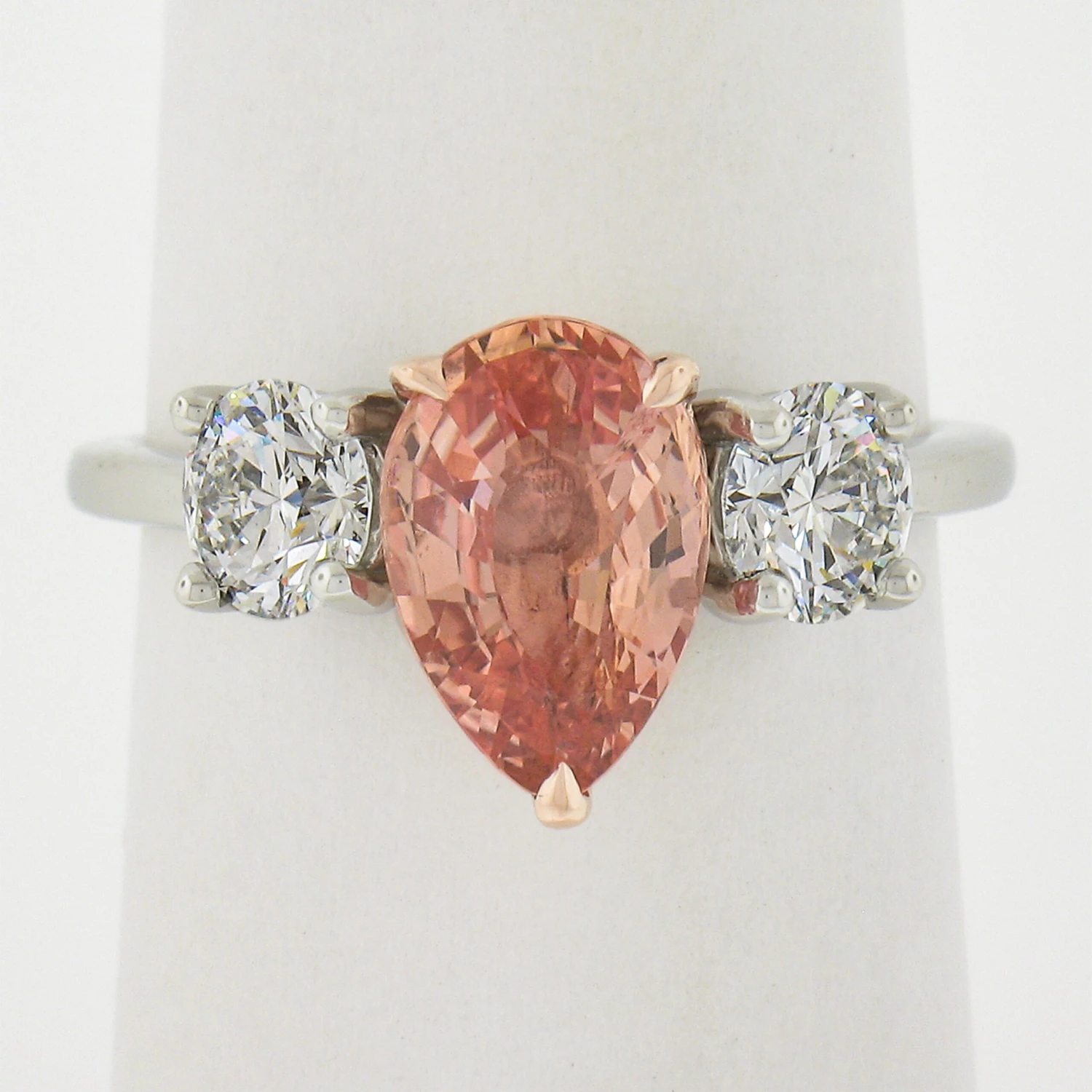 (1) Natural Genuine Padparadscha Sapphire – Pear Brilliant Cut – Claw-Prong Set – Fiery Orange Color – 2.12ct (exact – certified)