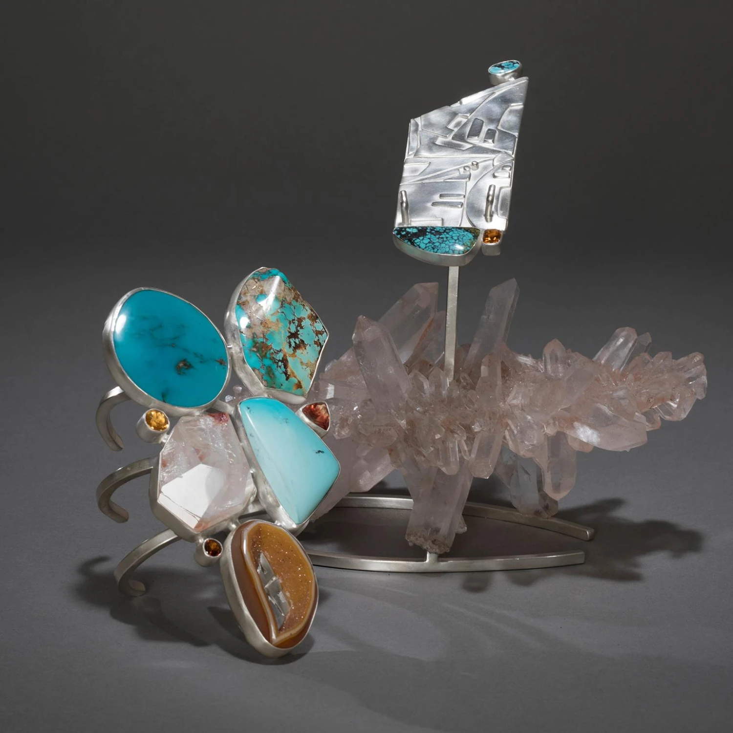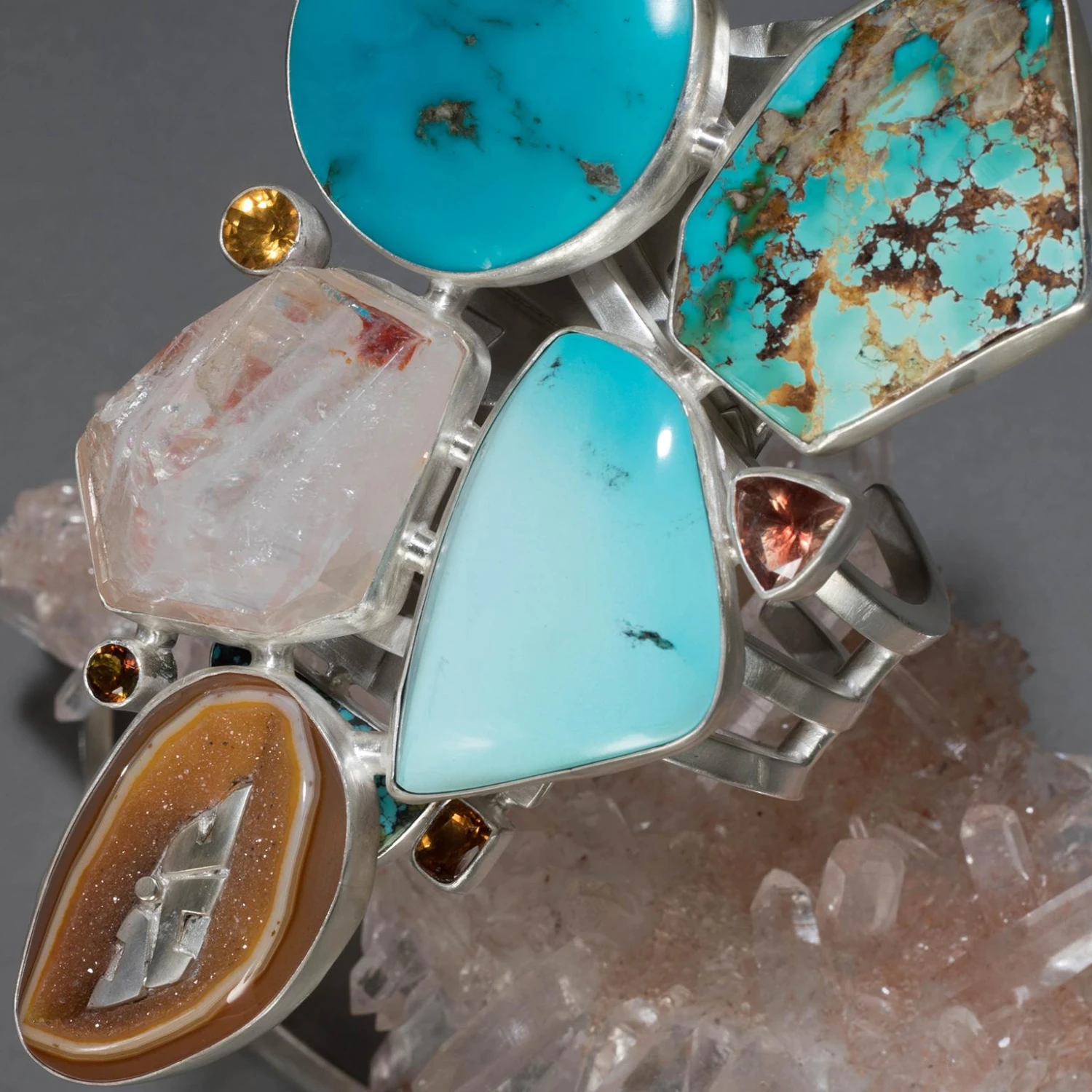 sun. A glittering druse-filled agate set with sculpted silver brings a final protective balance