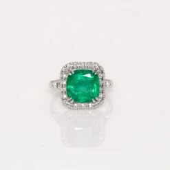 ANNIVERSARY Ring in white gold 18Kt 4.20 gr with central diamond cushion shape J color VS1 clarity 2.34 ct and diamonds G color VS clarity in total 0.50 ct.