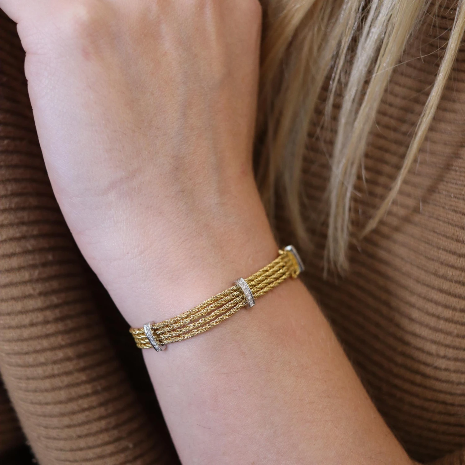 - Condition:Wear consistent with age and use. The overall condition of this bracelet is excellent. Beside the little normal wear, there is no damage to the gold. All diamonds are secured in the settings. This piece has been carefully inspected to guarantee the condition and authenticity.
