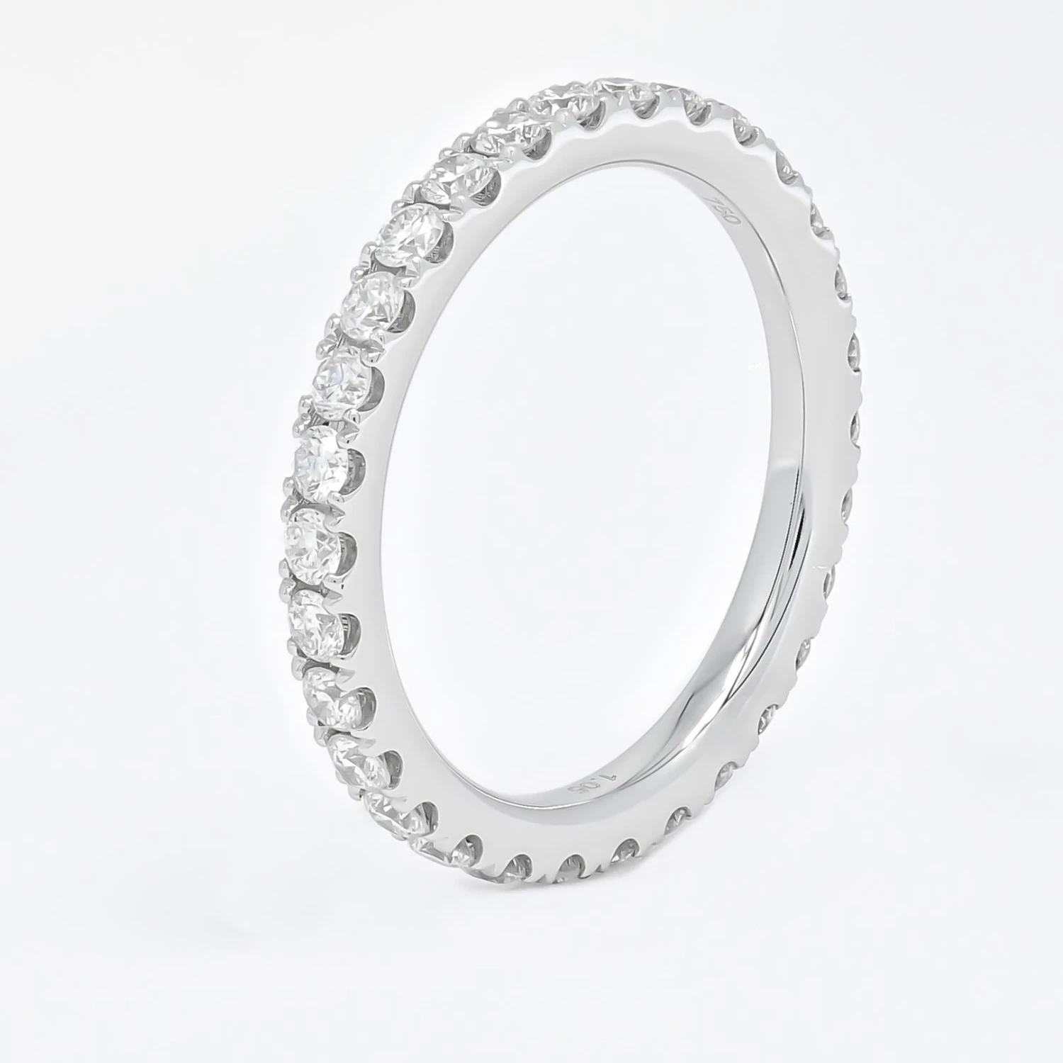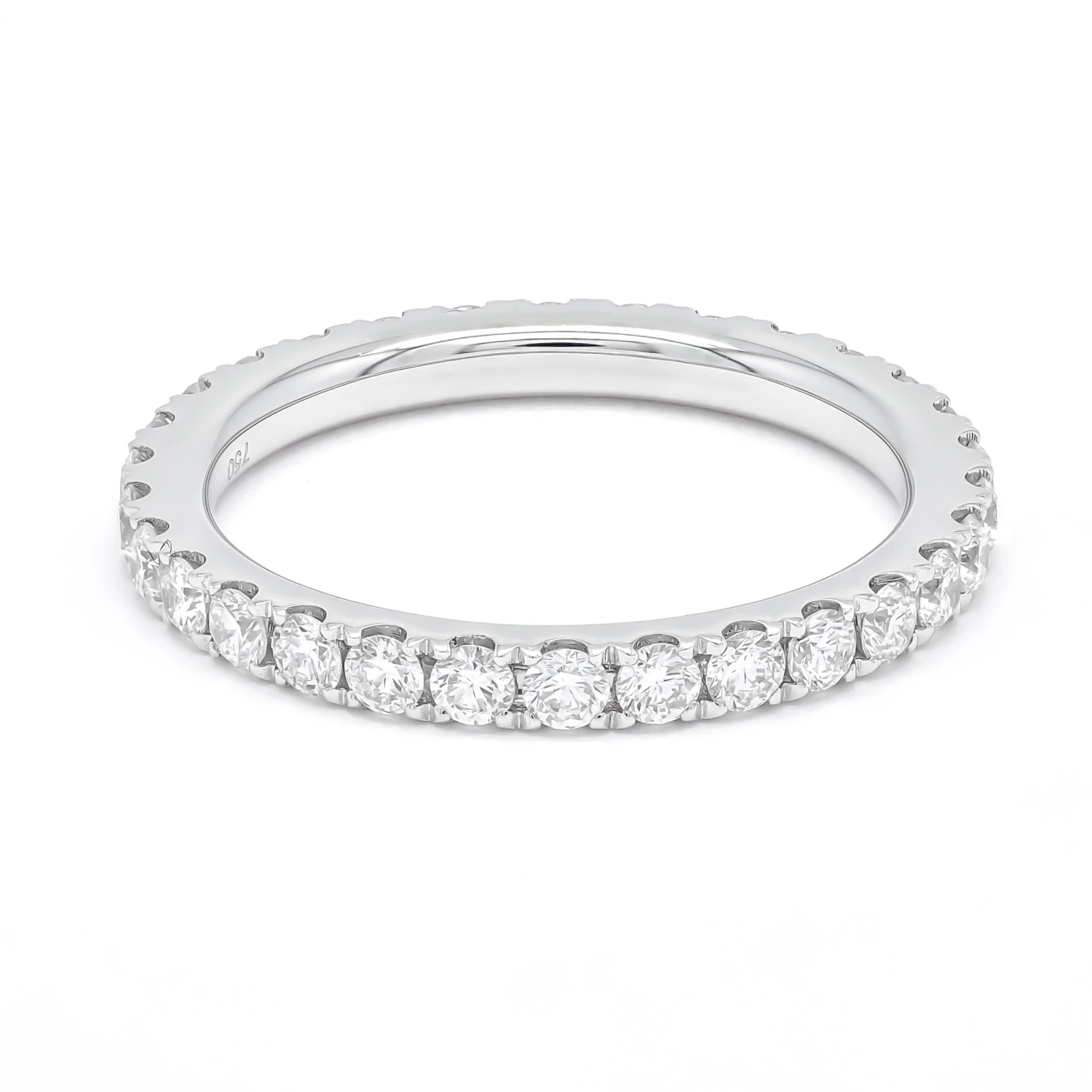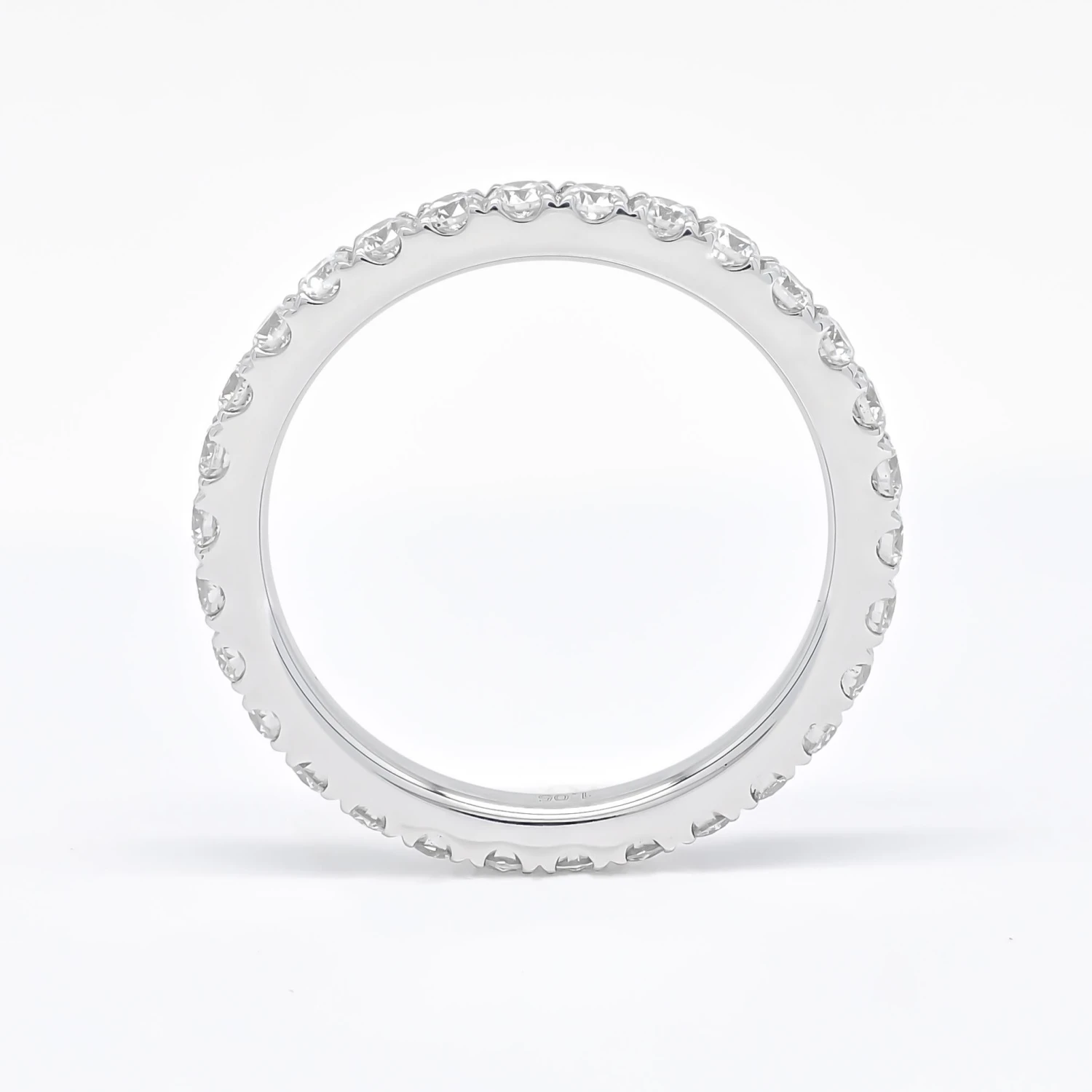 Each diamond is precisely cut and expertly arranged in an unbroken circle, symbolizing everlasting love and commitment. The brilliance of the diamonds is accentuated by the elegant and sleek white gold setting, allowing the light to dance and reflect off every facet, creating a breathtaking display of radiance.