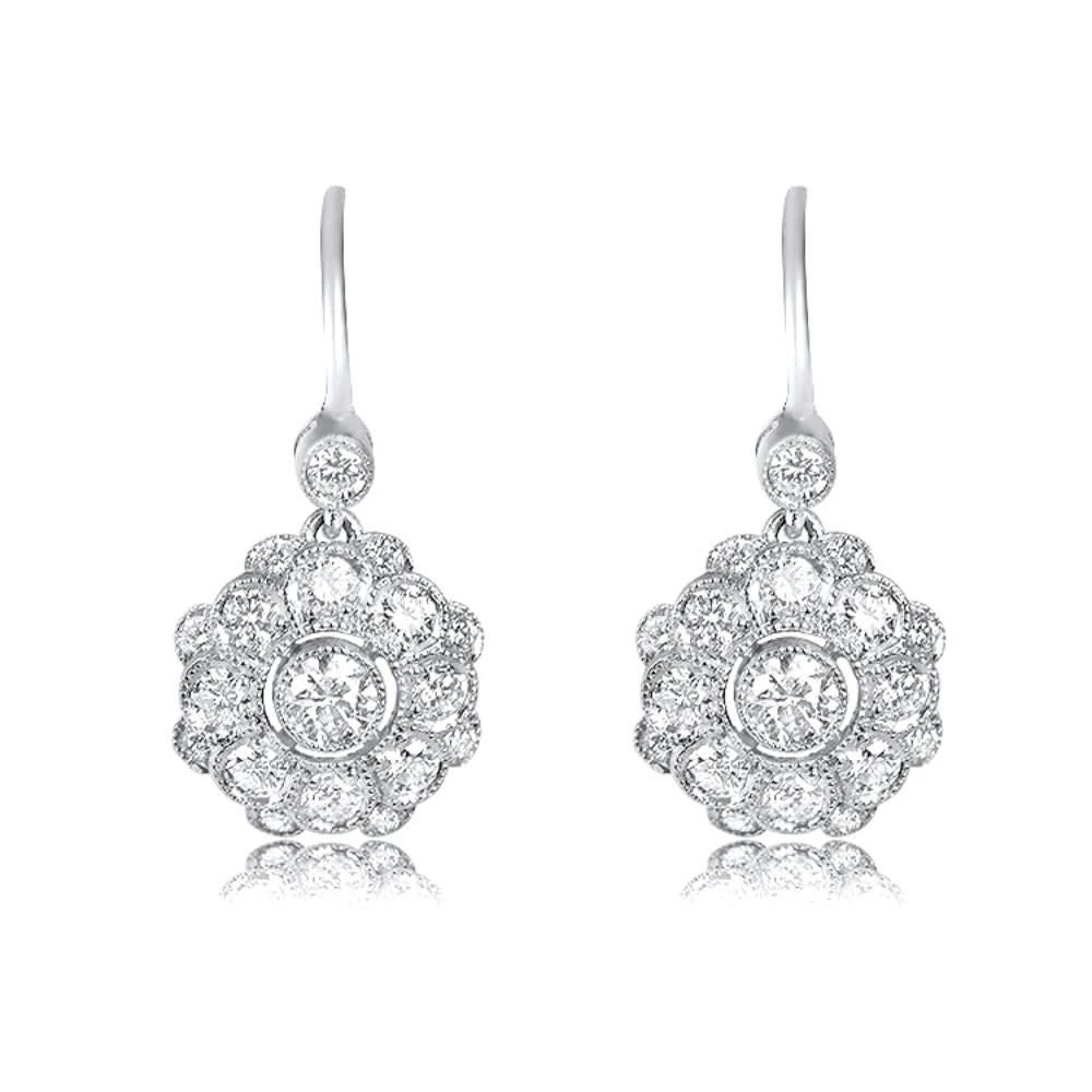 Every detail has been meticulously attended to, with delicately milgrained bezels adding a touch of intricate artistry. These earrings have been lovingly hand-crafted in platinum, a symbol of enduring luxury and timeless elegance. The inclusion of gold clips for the backs adds an extra touch of refinement and ensures a secure and comfortable fit.Wearing these earrings is like wearing a piece of art, capturing the essence of nature’s beauty and the brilliance of diamonds.