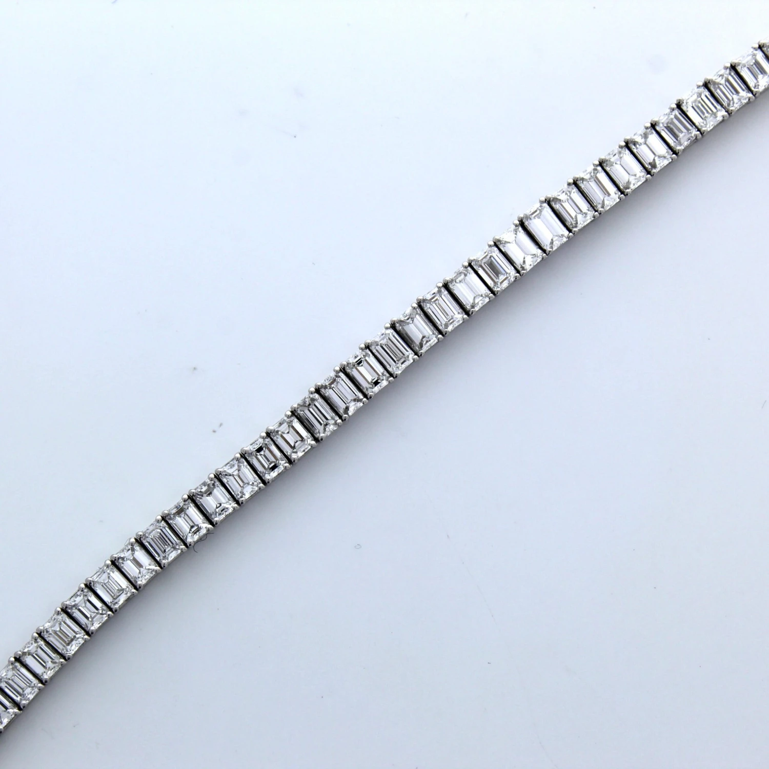 The 11.01 carat total weight 56 emerald G-H color and VS1-VS2 clarity fashion bracelet in 14k white gold is a high-end piece of jewelry that is designed to capture attention and make a statement. Each diamond is carefully selected for its exceptional quality, with a G-H color rating indicating near colorless diamonds and a VS1-VS2 clarity rating indicating diamonds with very slight inclusions that are not visible to the naked eye. This ensures that the diamonds are clear, brilliant, and have a stunning sparkle that catches the light from every angle.