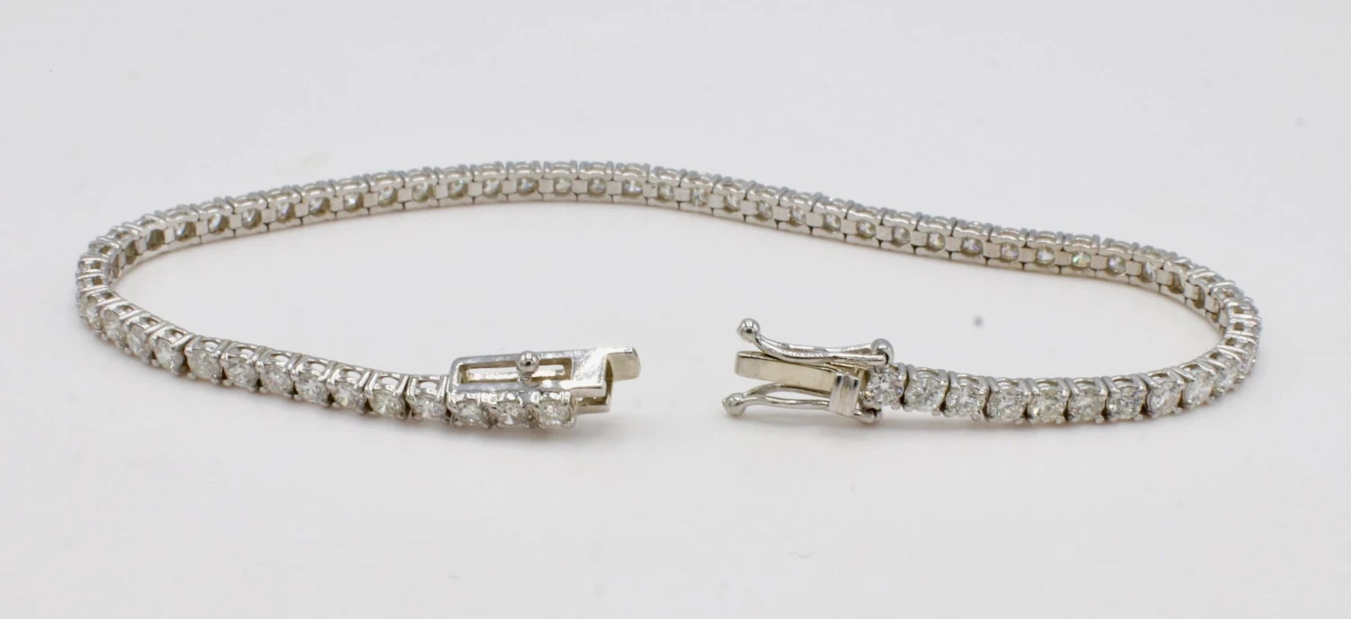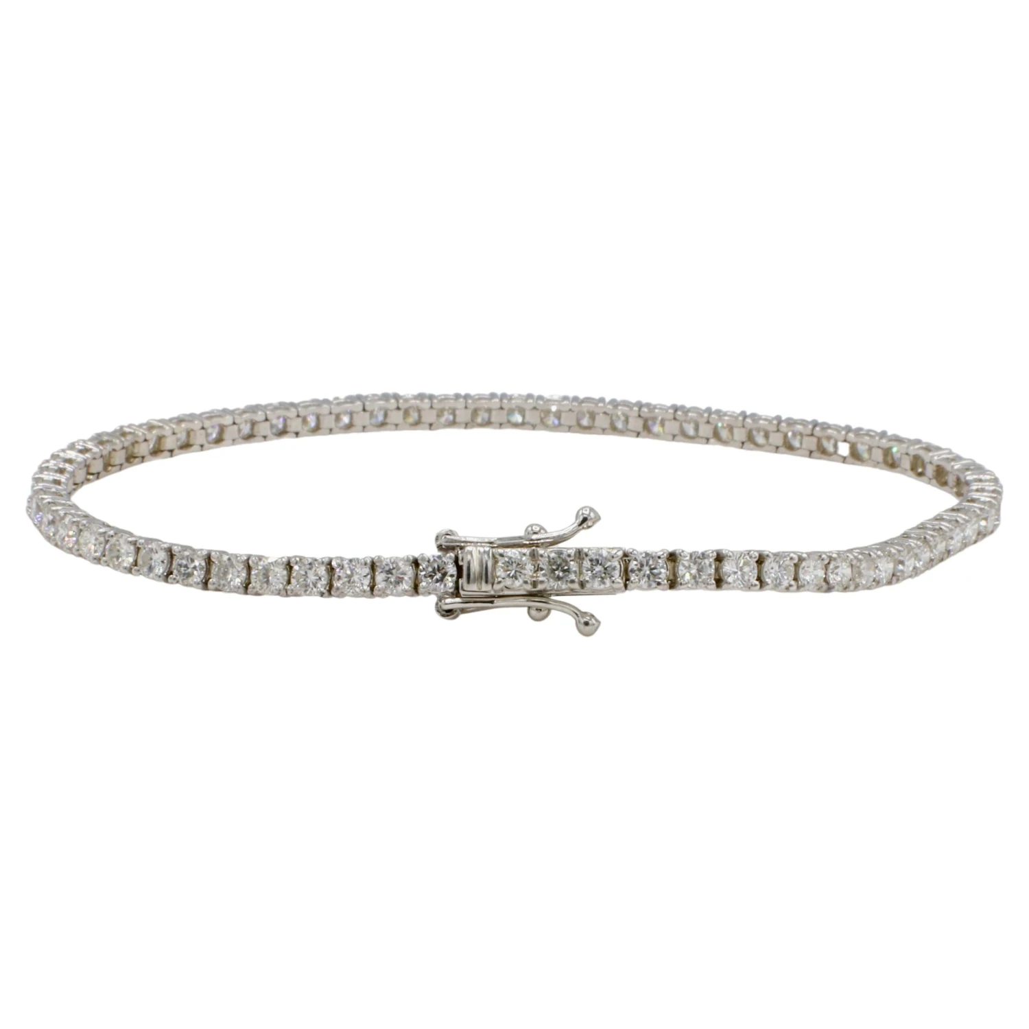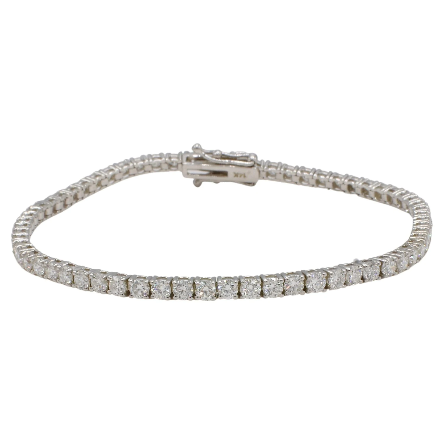 14 Karat White Gold 4.22 Carat Natural Round Diamond Tennis Line Bracelet