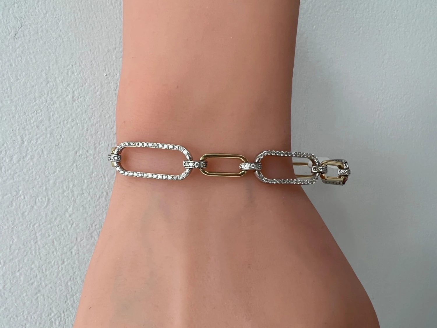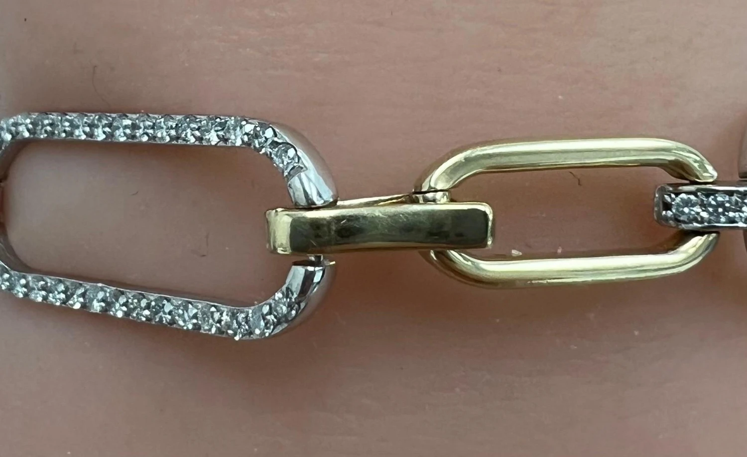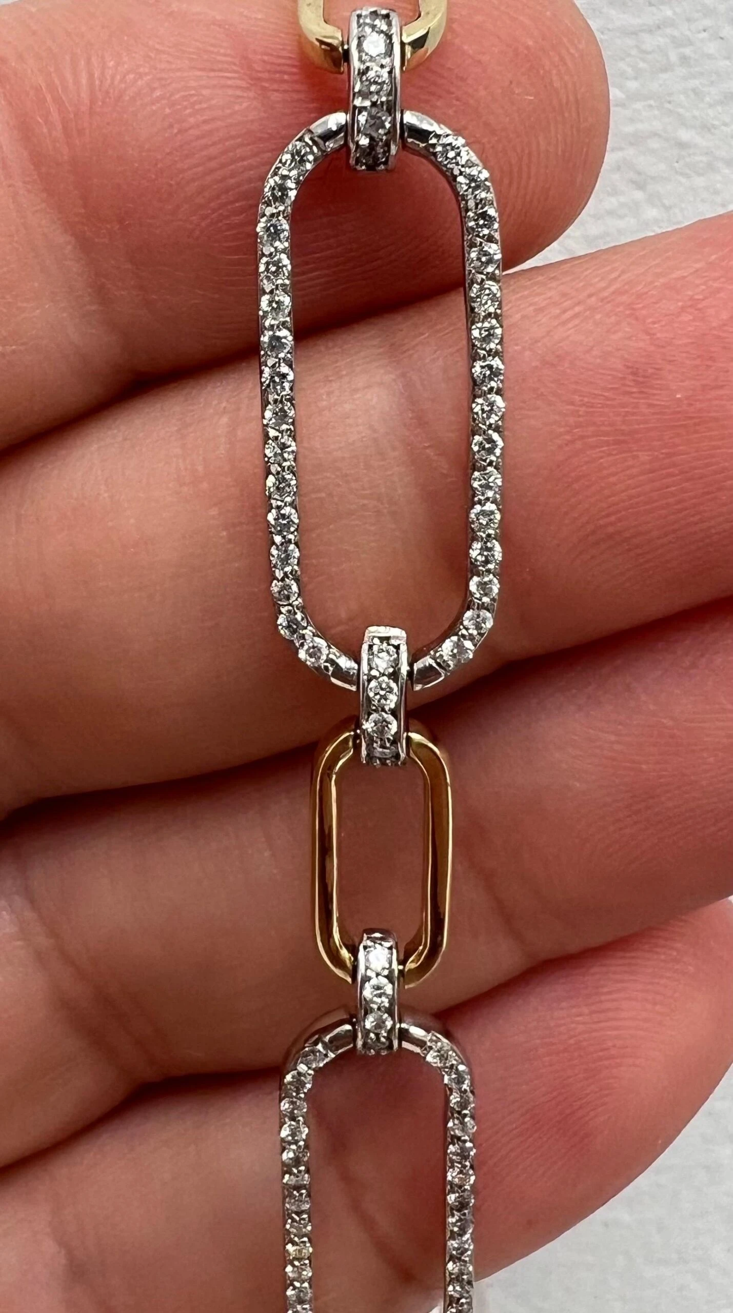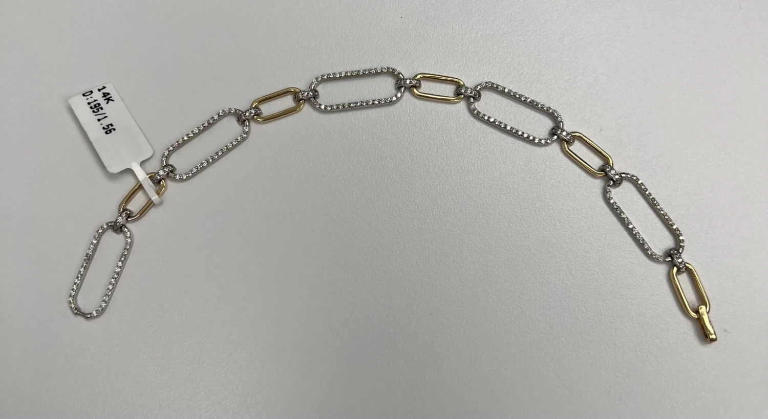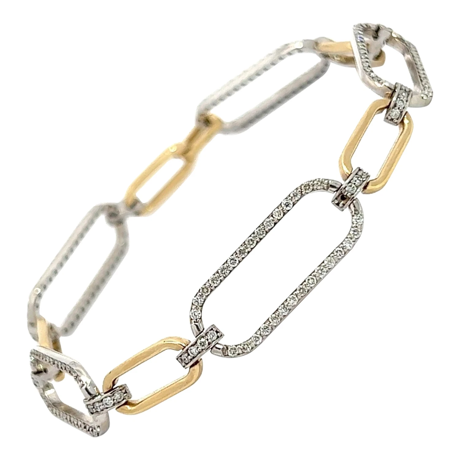 14k Two-Tone Paper-Clip Oval Shape Bracelet with 1.56 Carats of Natural Diamonds.