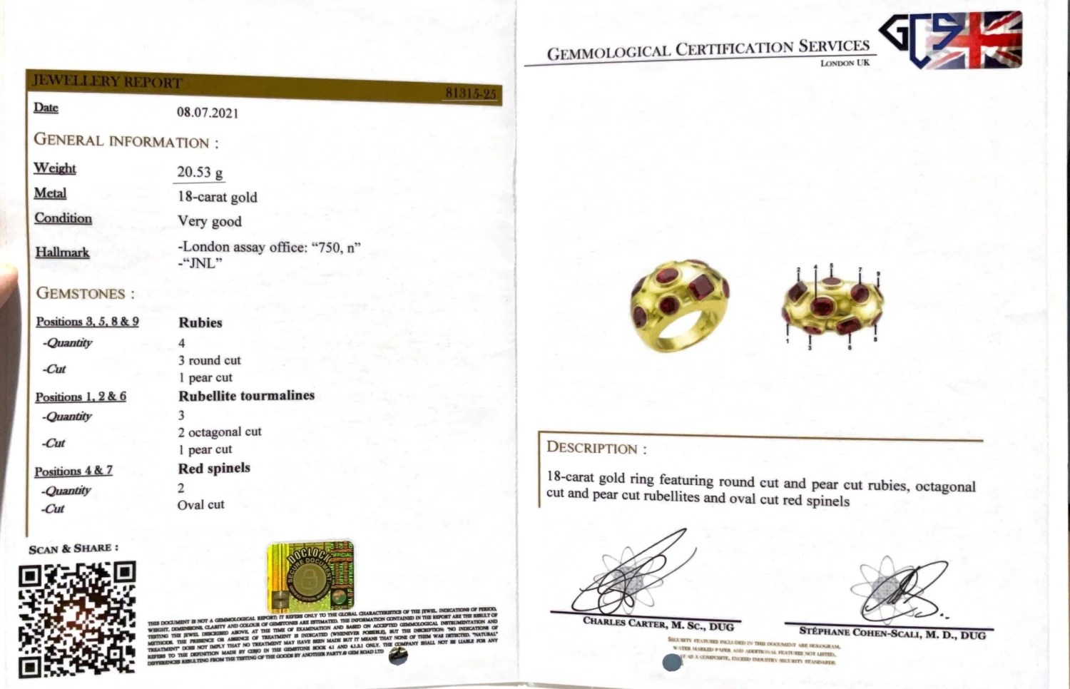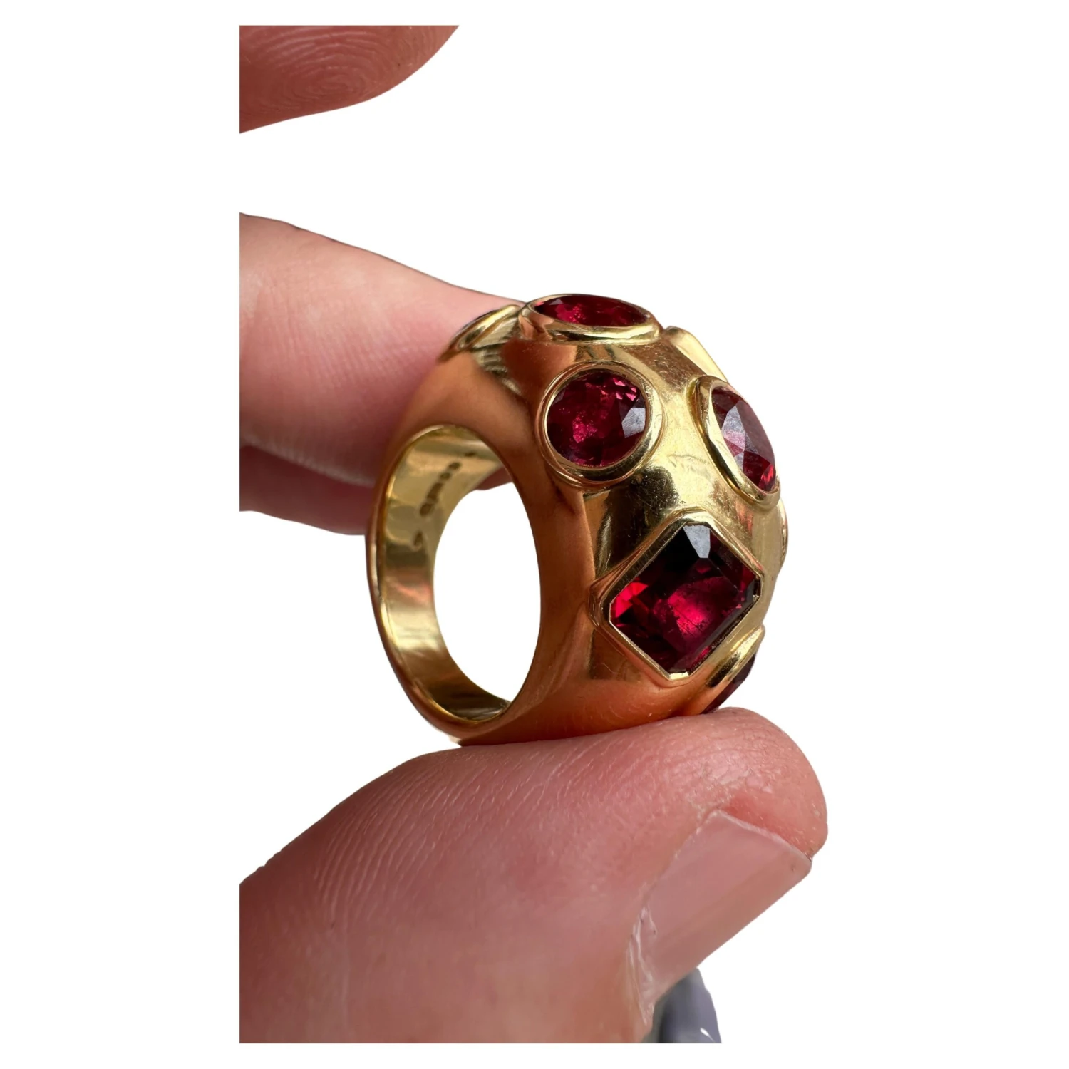 Embrace the allure of these breathtaking gemstones, beautifully arranged within the intricate design of this exceptional ring. The combination of vibrant rubies, mesmerizing rubellite tourmalines, and the fiery red spinels creates an eye-catching and unique composition.