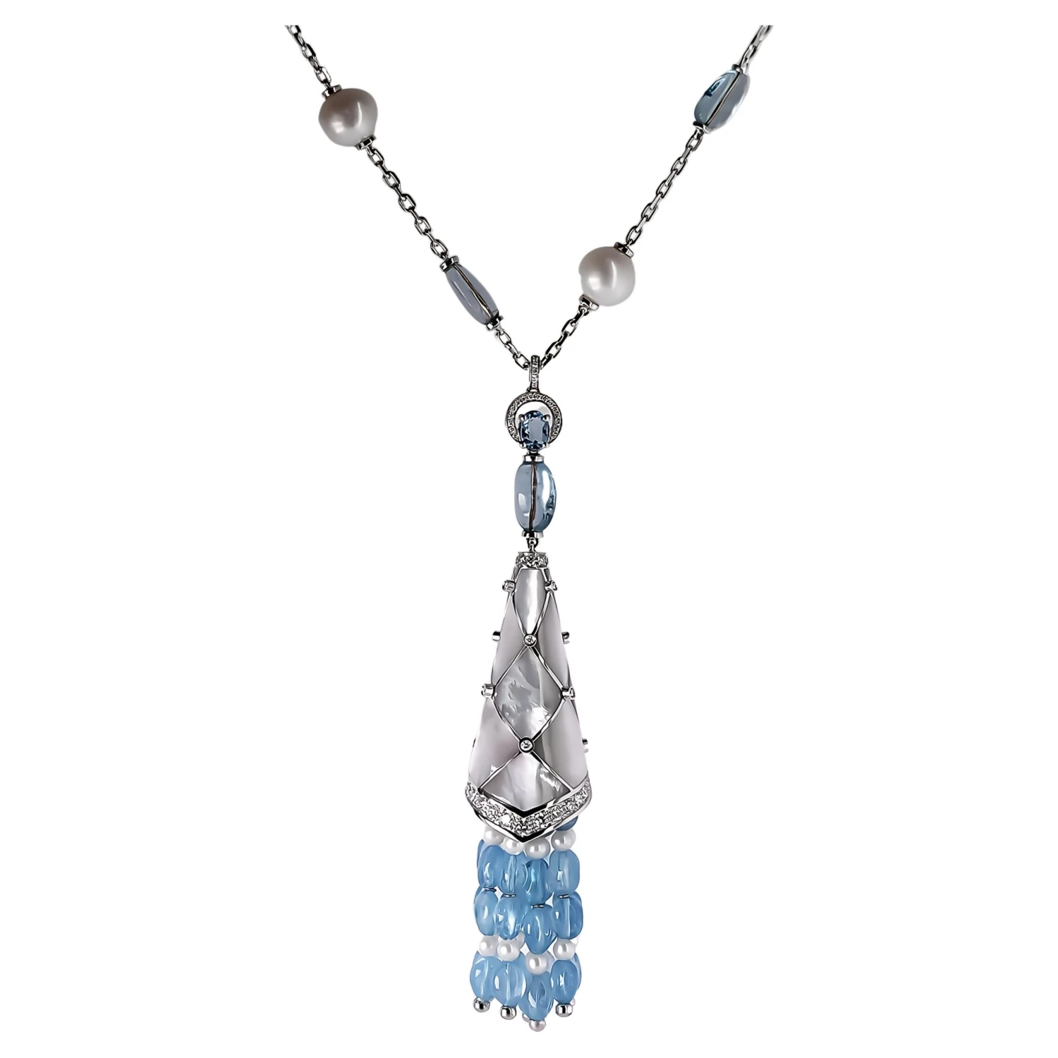 This contemporary style necklace is incredibly versatile, perfect for both casual pairings with jeans and a white shirt, or for more formal occasions with an elegant evening dress. The silky white pearls and blue shades of Aquamarine blend harmoniously, creating an effect of delicacy and sophistication. This charming piece of jewellery enchants women of all ages, adding a touch of sophisticated elegance to their personal style.