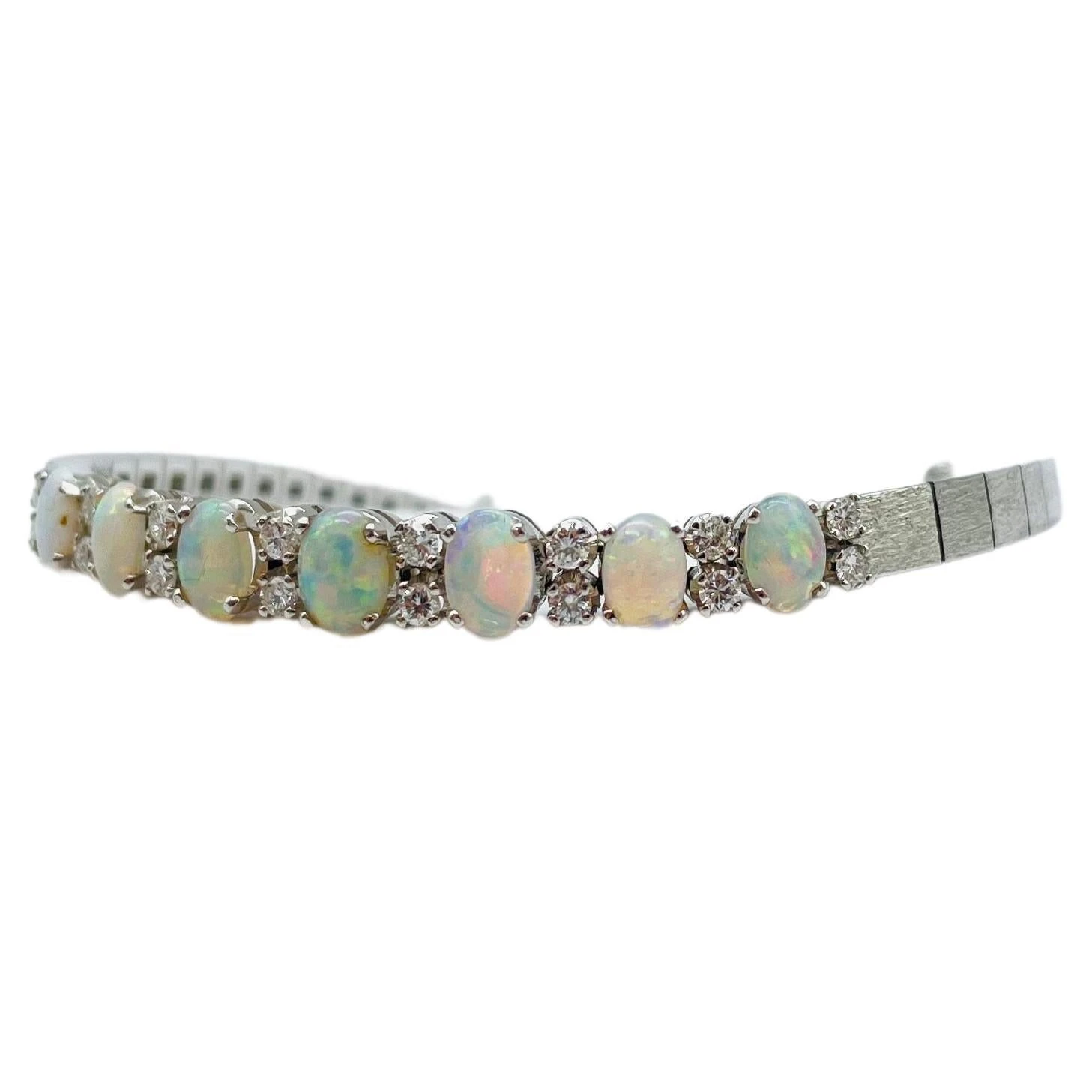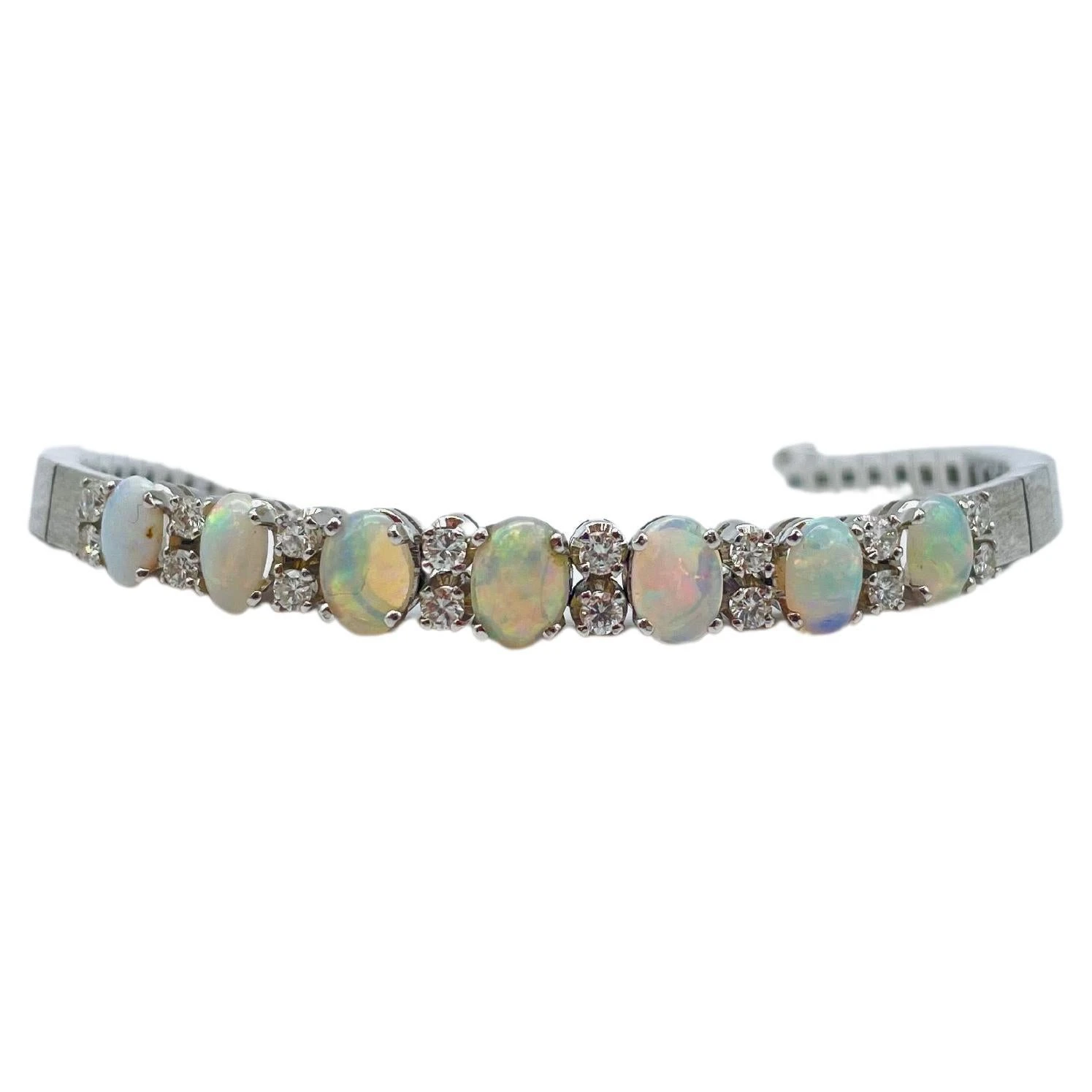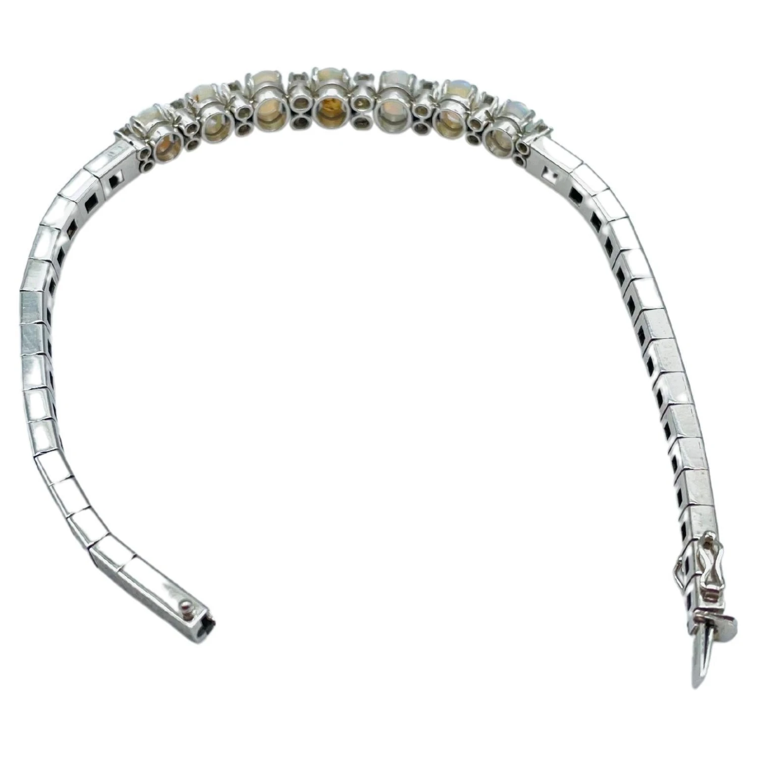 As you wear this dreamlike and beautiful bracelet, its presence will evoke a sense of elegance and sophistication. With its intricate design and harmonious combination of crystal fire opals and diamonds, this piece becomes an emblem of refined taste and opulent style. It is a true testament to the artistry and craftsmanship that has gone into its creation.