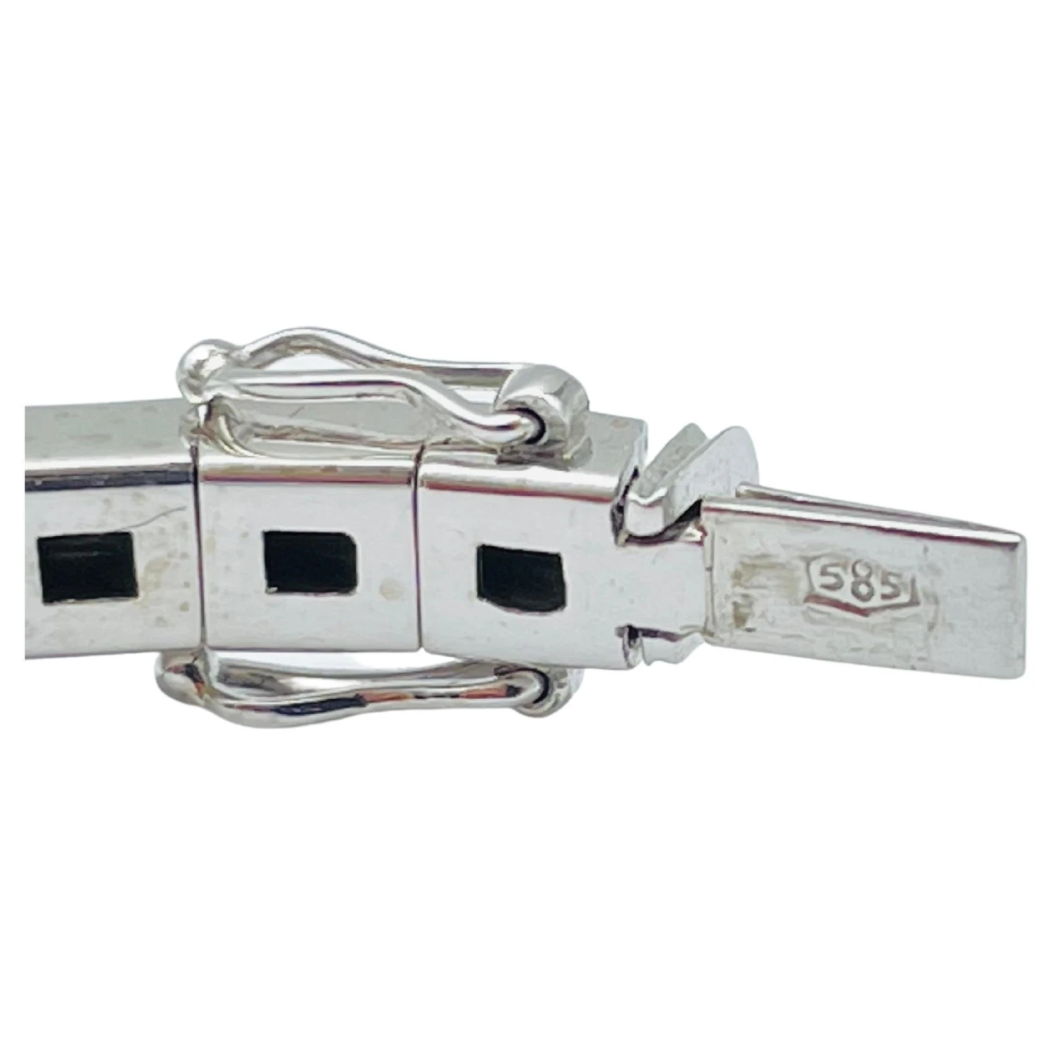 Weighing a graceful 15.93g, this stunning bracelet gracefully adorns the wrist with its length of 18cm. Its slender width of 0.4cm adds to its delicate allure, enhancing its overall aesthetic appeal. The lustrous white gold sets the stage for the dazzling gems, reflecting their brilliance and creating a mesmerizing dance of light.