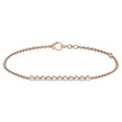 This minimal and unique, everyday luxury Minimal Diamond Line bracelet design features round diamonds bezel set in gold.