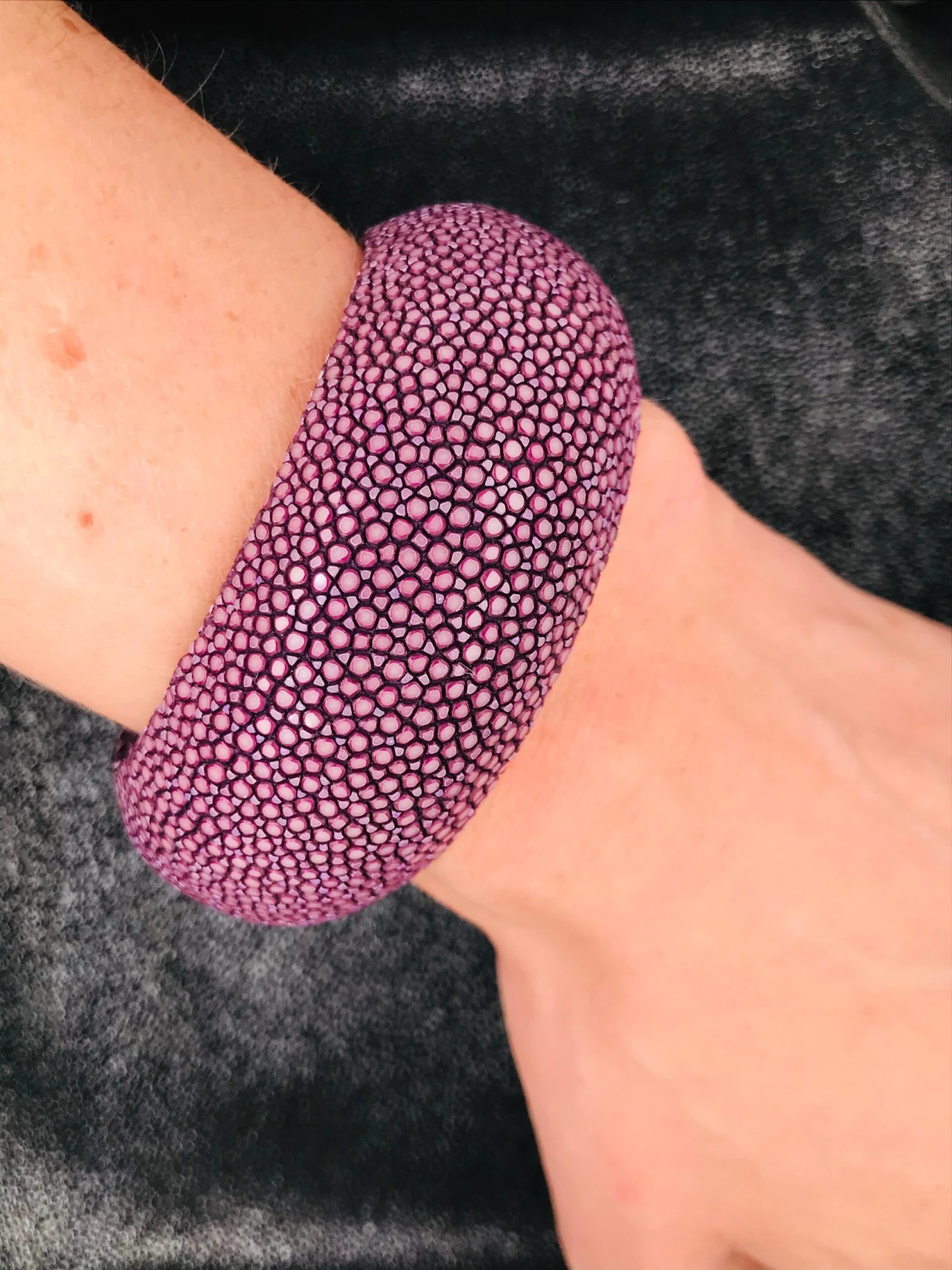 Purple shagreen, also known as stingray leather, is renowned for its unique texture and exceptional shine. This exquisite material gives the bracelet a luxurious appearance and a pleasant feel to the touch. Every detail has been carefully designed to ensure exceptional craftsmanship, making this bracelet a true masterpiece.