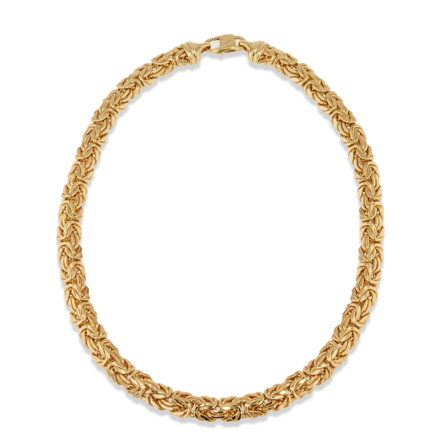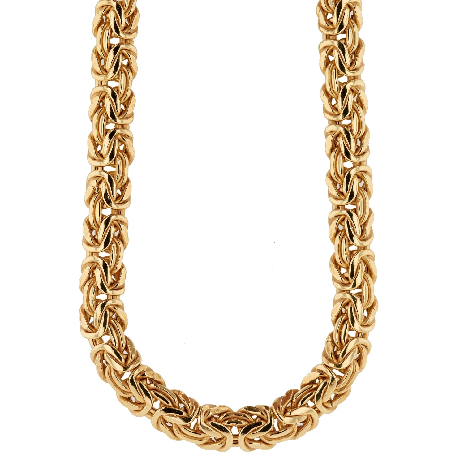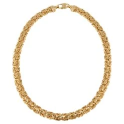 Crafted with 14 karat yellow gold, the 16.25-inch necklace is 9 mm wide and perfect for daytime and evening wear.
