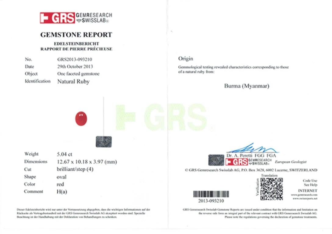 Ruby 5.04 carats (GRS GEMRESEARCH SWISS LAB)
