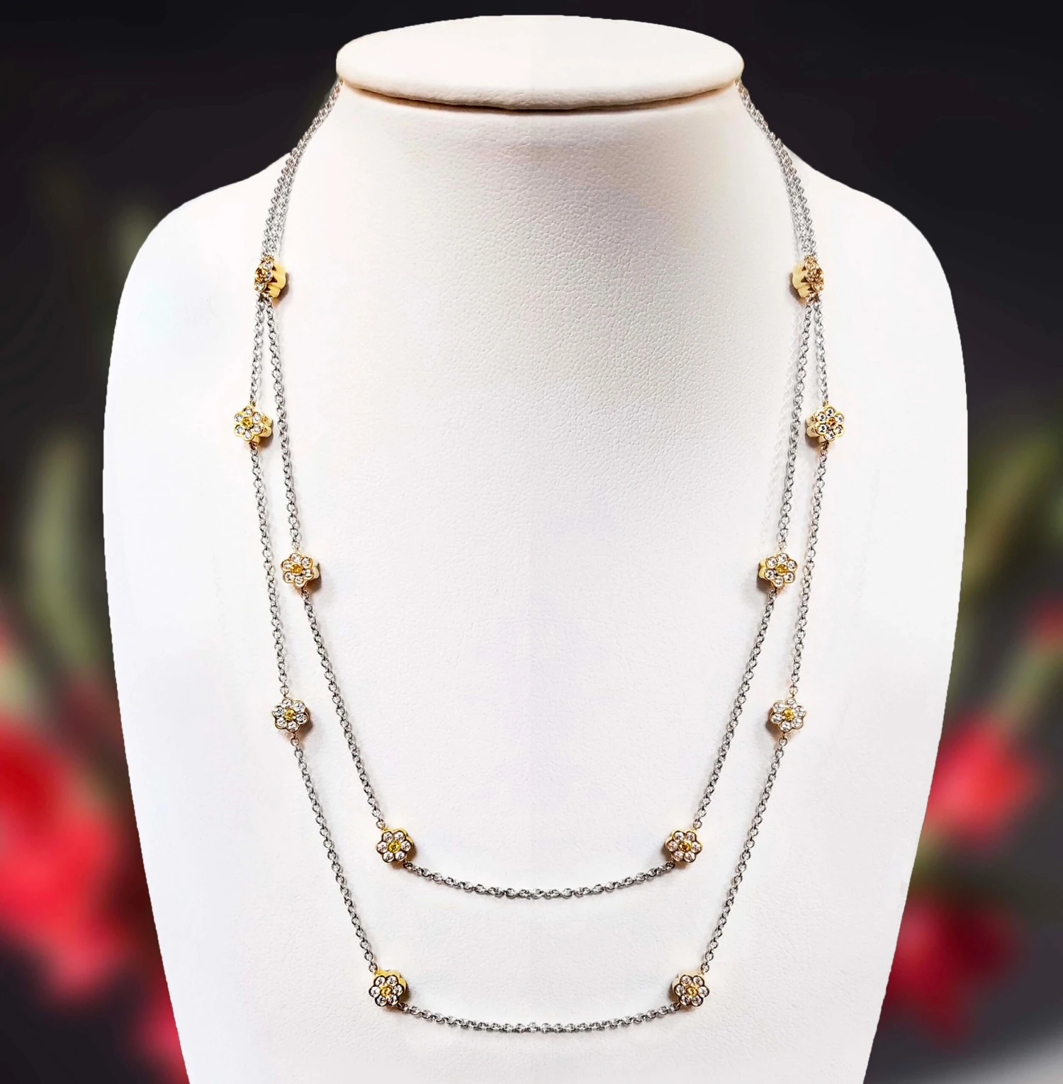 Gemstones: White Diamonds 1.69 ctw, Fancy Yellow Diamonds 0.30 ctw.