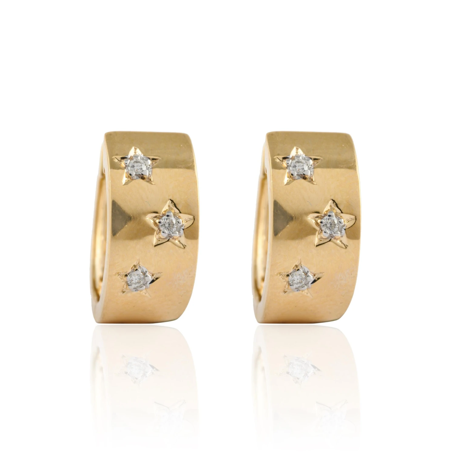 Designed with round cut diamonds scattered in gold pave settings. This beautiful handcrafted diamond huggie earrings are great birthday gift or anniversary gift or bachelorette gift for anyone on your list.