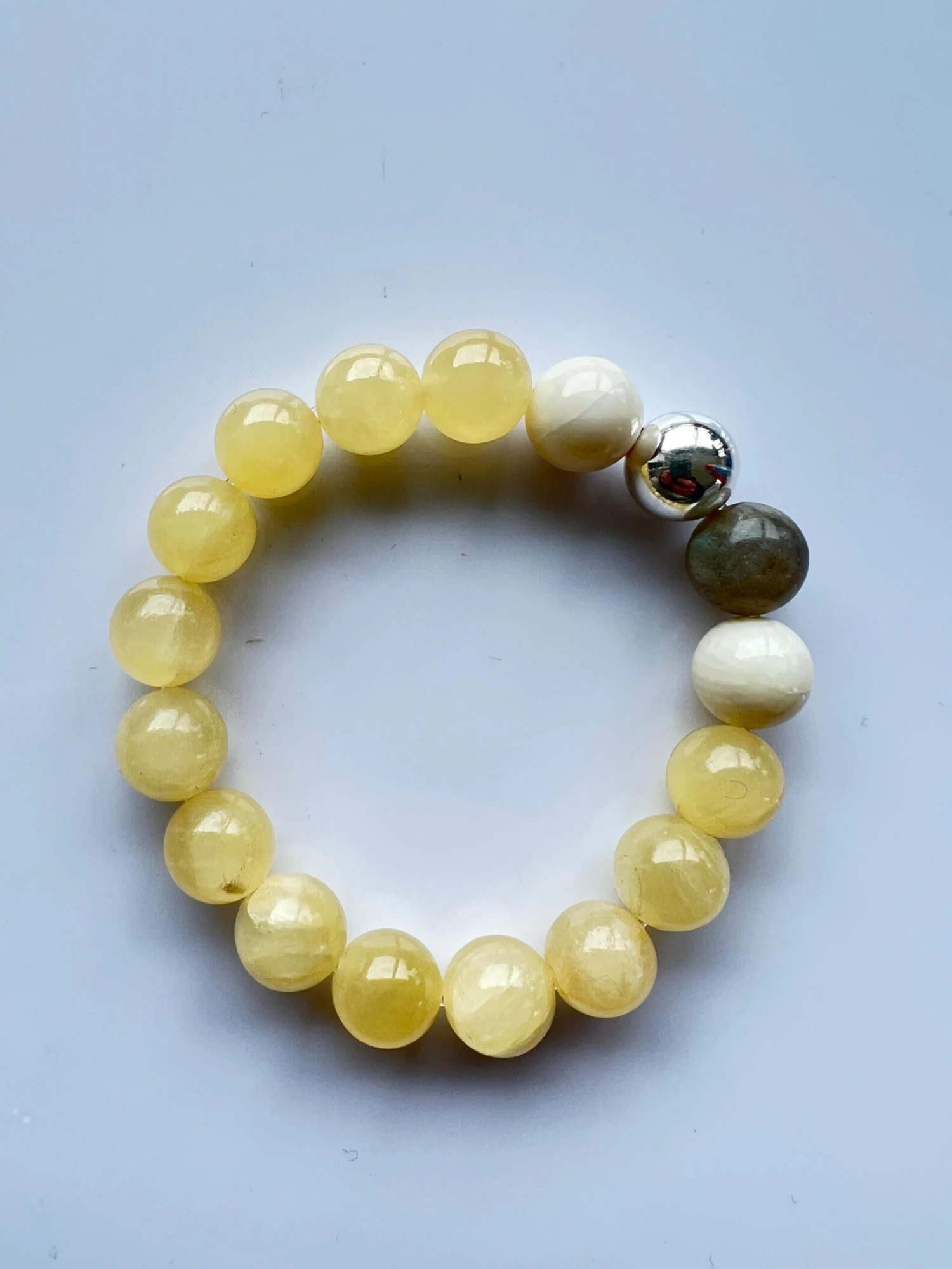 The bracelet, measuring 6.5 inches in length, is adorned with aquamarine beads, each encapsulating the tranquil hues of the sea. Aquamarine, a gem known for its calming, soothing, and purifying properties, takes center stage in this creation. Named after the Latin term for « water of the sea, » the stone’s cool blue-green shades echo the peaceful stillness of a gentle ocean.